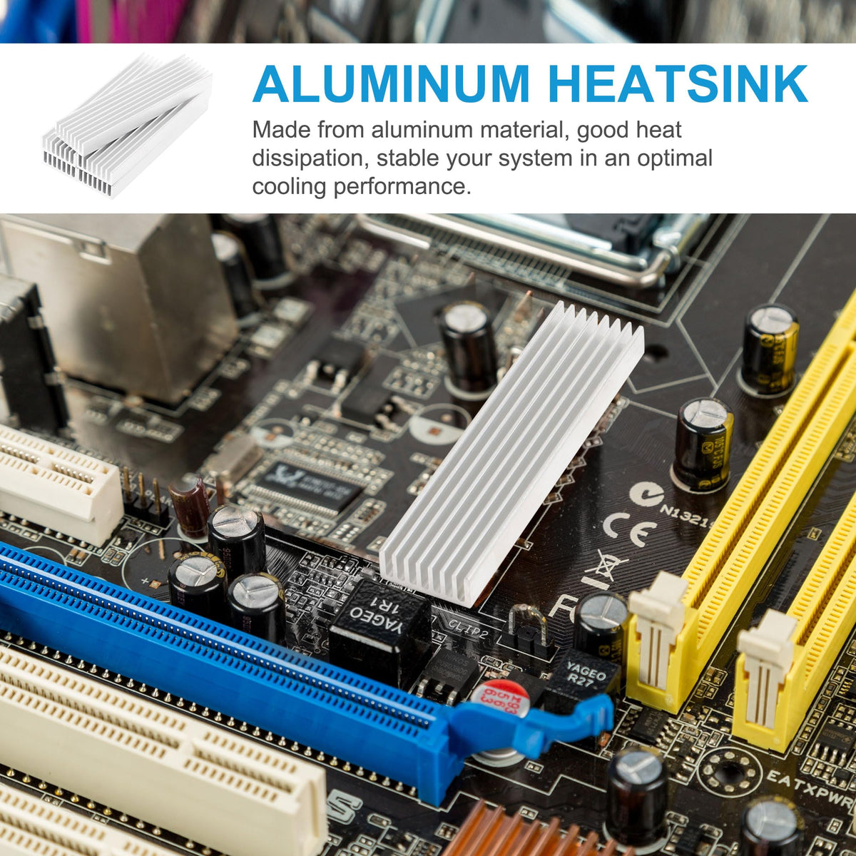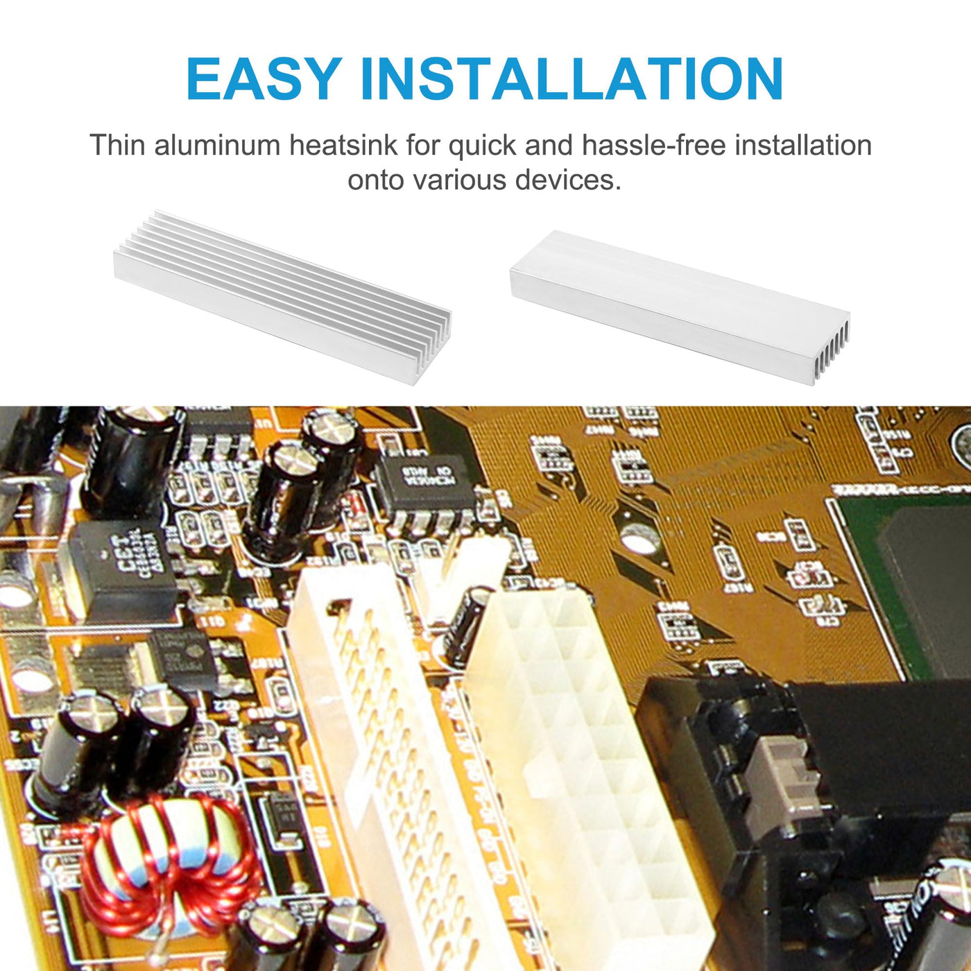 Q: How does the uxcell Aluminum Heat Sink help prevent overheating?A: The uxcell Aluminum Heat Sink is designed to maximize surface area contact with cooling air, effectively dissipating heat and reducing power loss in electronic devices, thereby preventing overheating and potential damage.