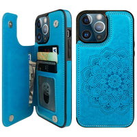 Vaburs Compatible With Iphone 13 Pro Max Case Wallet With Card Holder, Embossed Mandala Pattern Flower Pu Leather Double Button
