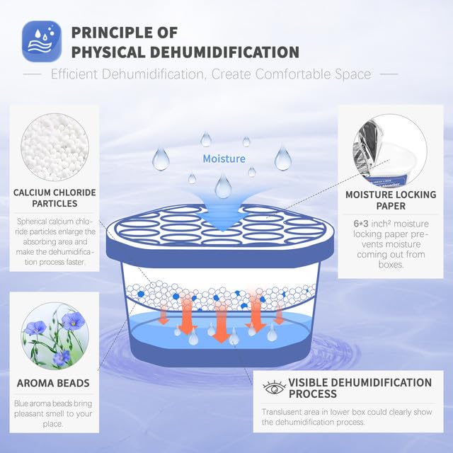 Q: How do Vacplus moisture absorbers work?A: Vacplus moisture absorbers utilize spherical calcium chloride particles that attract and trap excess moisture from the air. As the particles absorb humidity, they dissolve and collect water in the bottom of the box, allowing you to monitor the effectiveness of the dehumidification process.