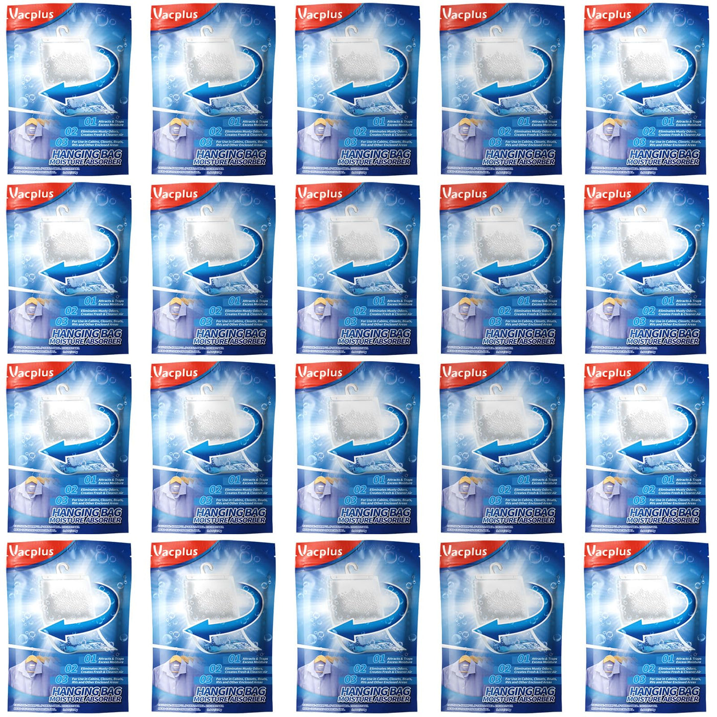 Q: How long do Vacplus Moisture Absorbers last?A: The effectiveness of Vacplus Moisture Absorbers can vary based on the humidity levels in the environment. However, each packet is designed to maintain a large capacity of 9.8 oz, allowing them to absorb moisture for an extended period before needing replacement.