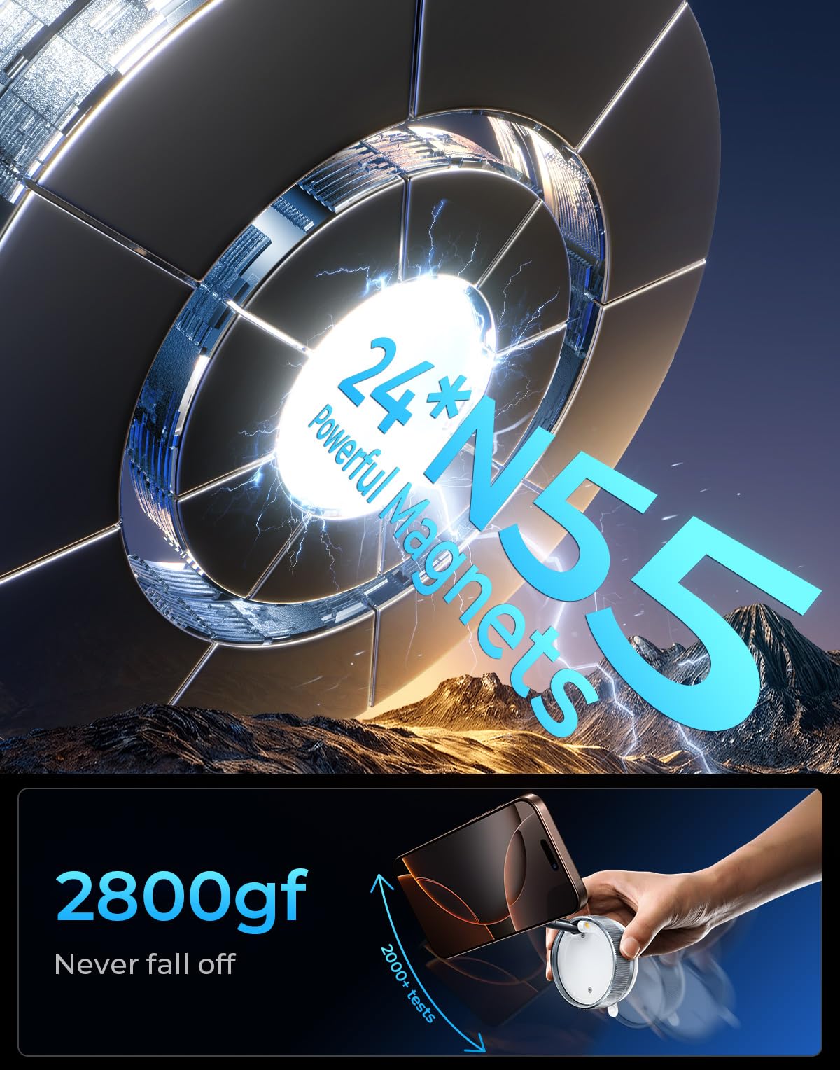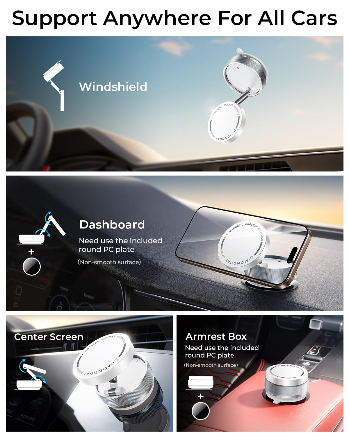 Vacuum Magnetic Phone Holder Stand [89+Lbs Strongest Suction & 24*N55 Ultra Magnetic] 360 Adjustable Car Phone Mount For Magsafe