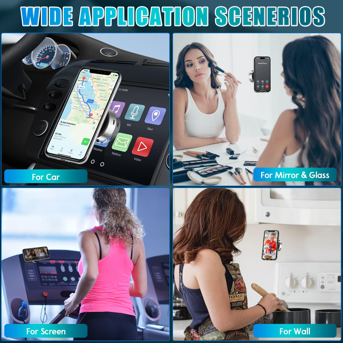 ???? 2025 Upgarded 360-Degree Rotatable Vacuum Magnetic Suction Cup Phone Mount Hands-Free Adjustable Electric Vacuum Magnetic Suction Cup Phone Holder Mount For Car/Smooth Surface/Mirror/Glass/Gym/Travel Universal Magnetic Car Cell Phone Holder Bracket Stand For All Phones Compatible With Ios Android Phones ???? ? Package Included: ? ? 1 * Vacuum Magnetic Suction Cup Phone Mount Holder ? 1 * Charging Cable ? 1 * Metal Ring ? 1 * Cleaning Pack