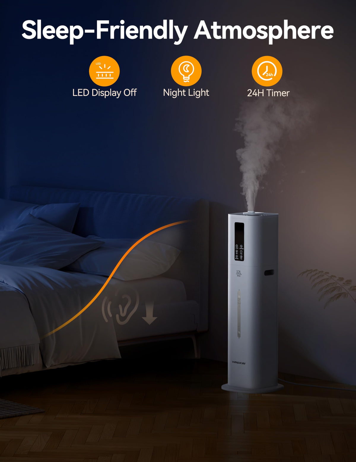 Powerful 12L Large Capacity Humidifierthe Vagkri Large Humidifier Is Designed To Cover A Spacious1000Ft Area, Creating A Comfortable And Healthy Living Environment In A Large Space. It Not Only Benefits You Personally But Also Your Family, Preventing The Troubles Caused By Issues Related To Dry Air.Vagkri Humidifiers For Home Have A Runtime Of Up To 120 Hours. You'Ll Have Peace Of Mind! Knowing That It Delivers Continuous Moisture To Combat Dry Air, Keeping Your Environment At The Proper Humidity Level For Long Periods Of Time.