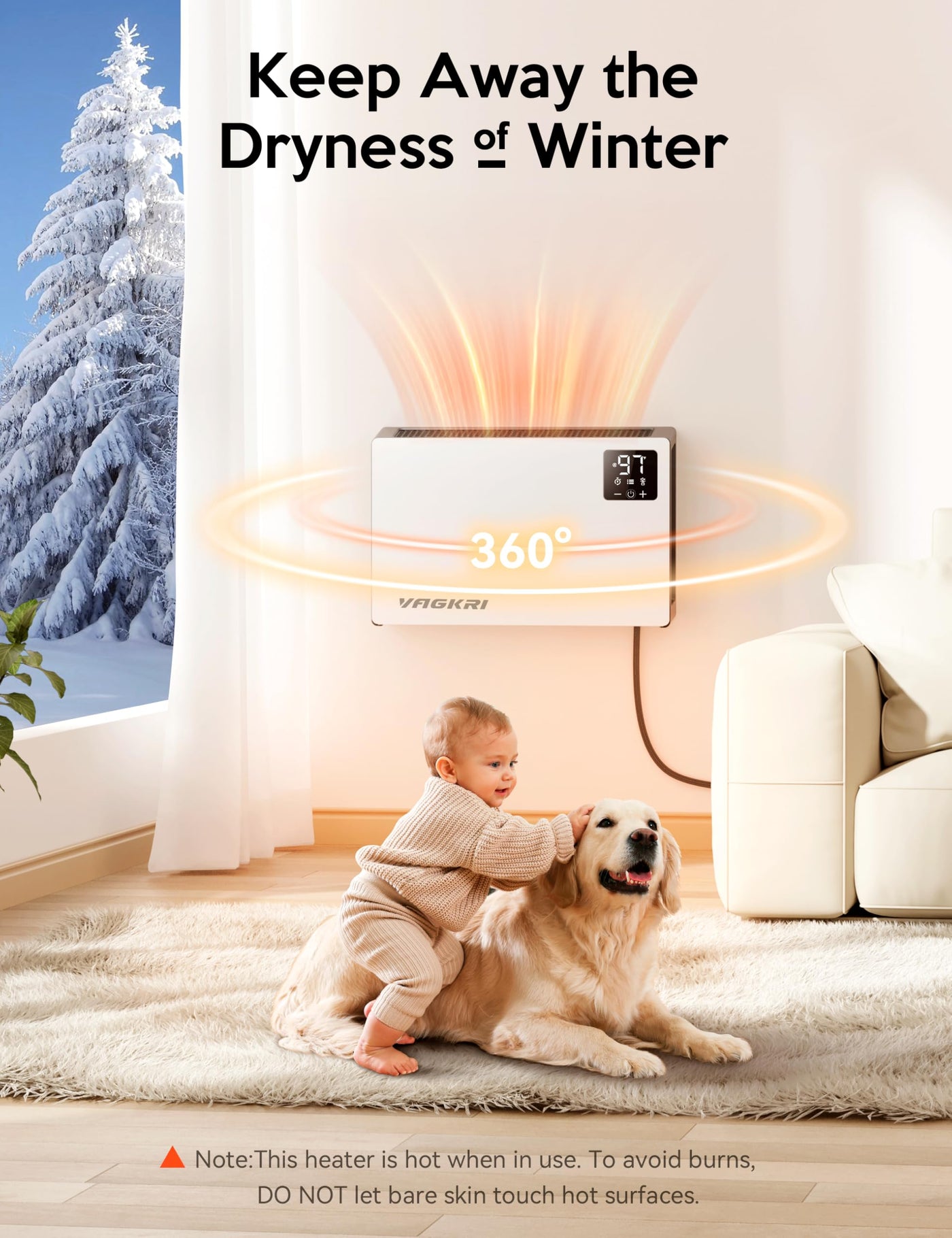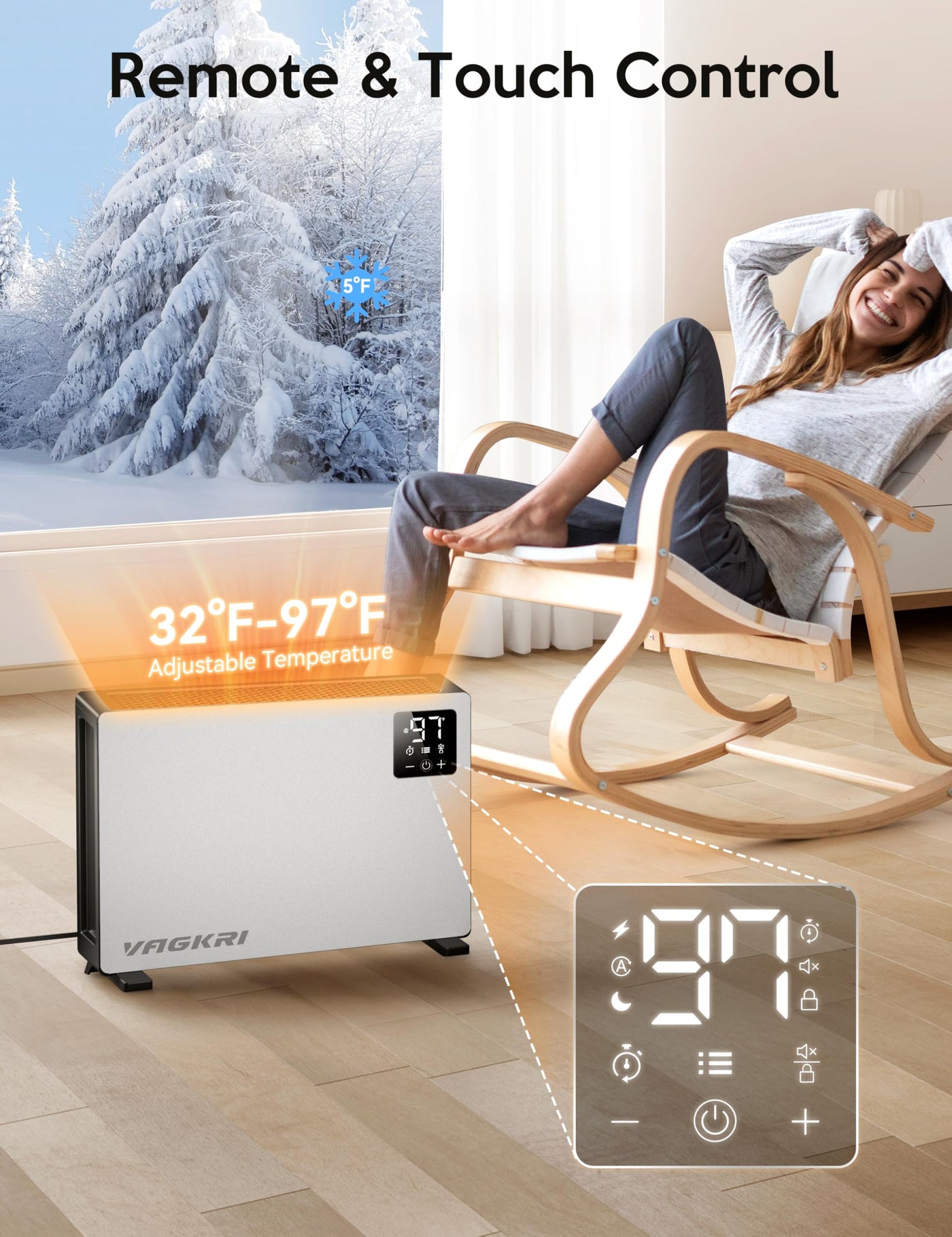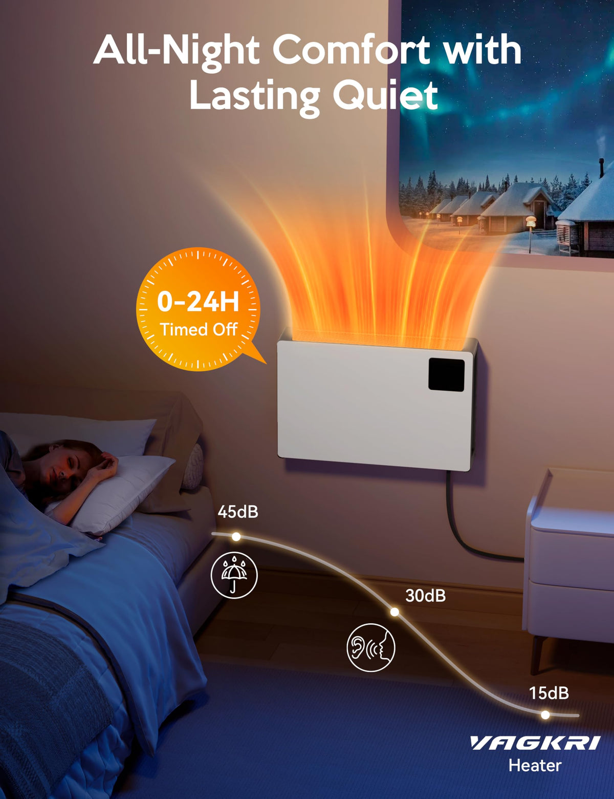 Vagkri Quiet Electric Space Heater, Wall Mounted Heater 1500W Fast Heating With Remote, 3 Heating Modes, 24H Timer, Indoor Heate