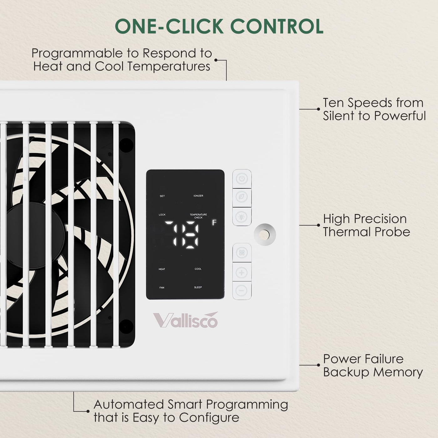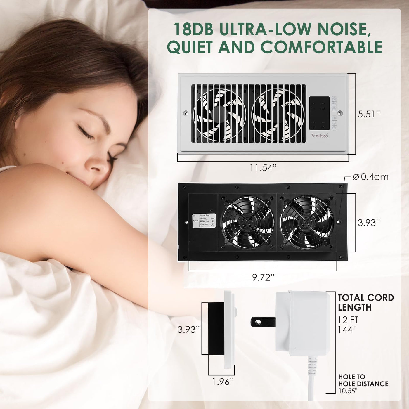 Vallisco Register Booster Fan 4 ''X10 '', 10-Speed Quiet Vent Fan With Negative Ion, Thermostat & Remote, Enhances And Improves