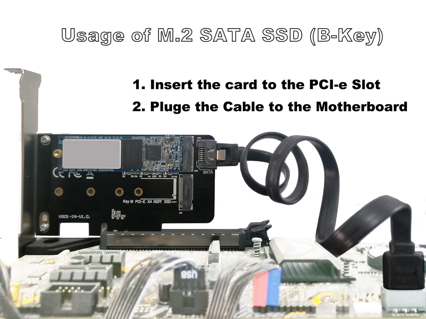 What This Card Adapter Connects: - 1 M.2 Device (M Key) To Run Via Pci-E Interface, Up To 32 Gbps - 1 Additional M.2 Device (B Key) To Sata 3 Port Supports: -Support M.2 Form Factors 2230, 2242, 2260, And 2280 - Supports Sata-Based B Key And Pci-E 4X-Based M Key Ngff Solid State Drives Operating Systems: Any Os Including Windows, Wince, Mac, Linux, + Other Specifications: - Connects One B Key & One M Key Ngff Ssd At The Same Time To Pci-E 4X Motherboard - Compliant With Pci Express M.2 Specification 1.0 - Compliant With Sata 3.0 Specification For B Key - Compliant With Pci-E 4X 3.0 Specification For M Key Includes: 1X Full-Profile Slot Brackets 1X Low-Profile Slot Brackets 2 Mounting Screw Sets 1X Sata 7 Pin Connectornote: Dual M.2 Ssd Suppoted, One Is For Nvme Ssd(M-Key) The Other Or Sata Ssd(B-Key), So Do Not Try To Connect 2 Nvme Ssds (Or 2 Sata Ssds).