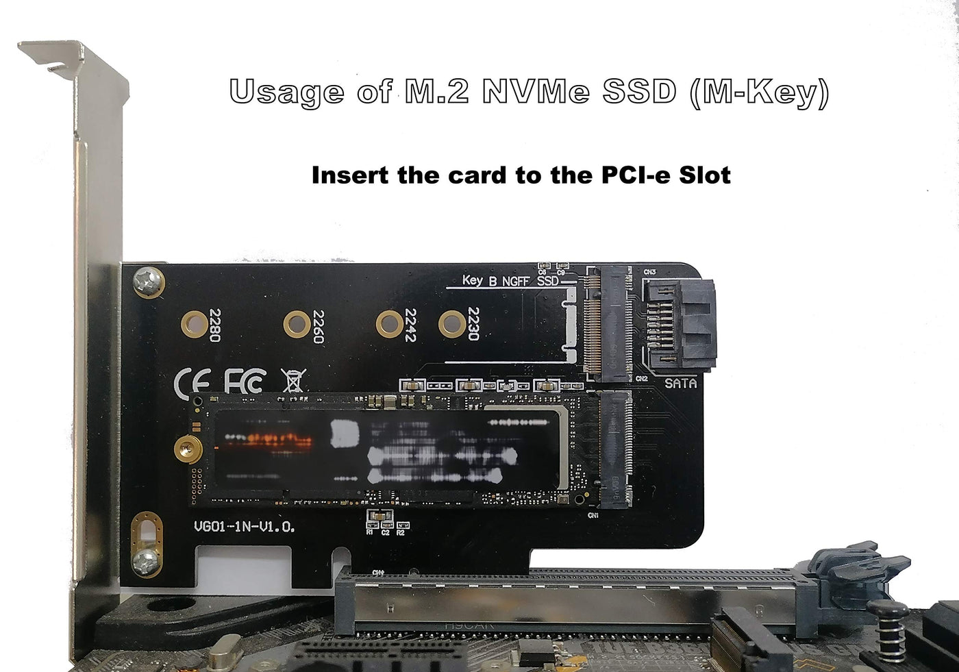 Valuegist Pcie Adapter For One M.2 Nvme Mkey And One Sata Bkey Ssd, Pci E 4.0 X4 Card Supports Ngff M2 M Key Or B Key (M+B) Ssd