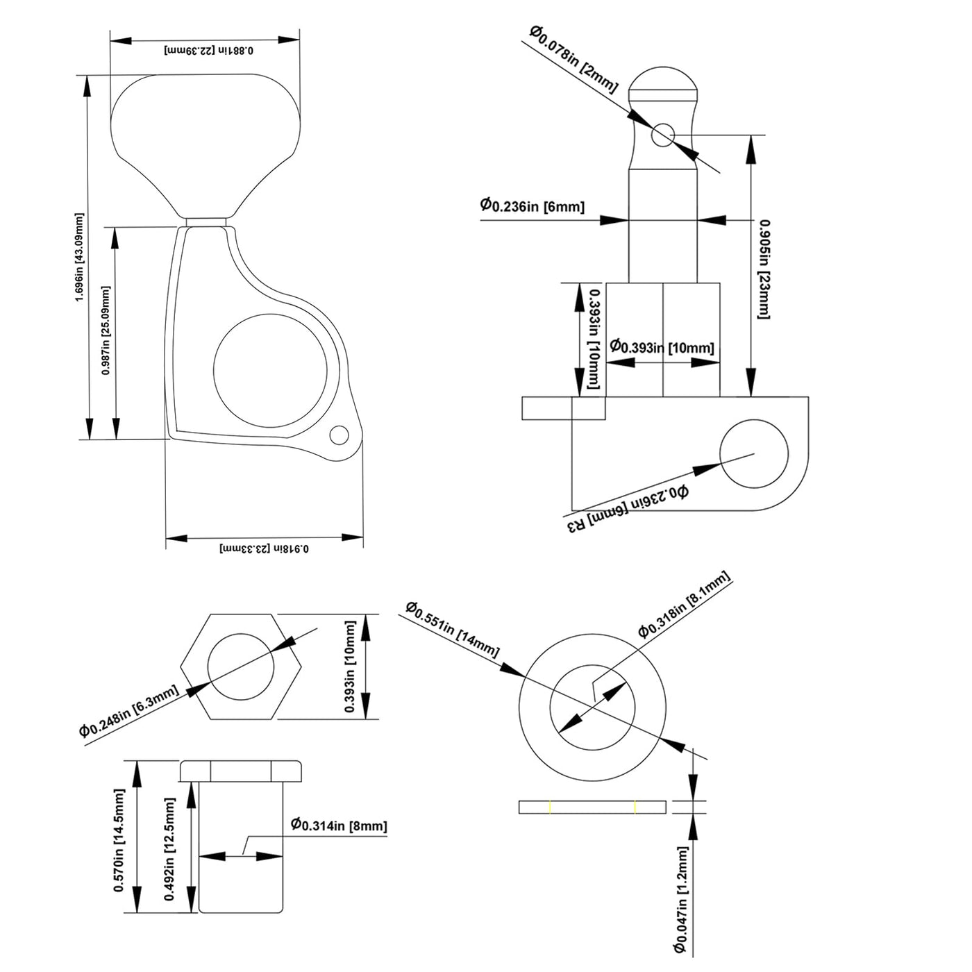 Vangoa 3L3R 6 Pieces Guitar String Tuning Pegs Tuner Machine Heads Knobs Tuning Keys For Acoustic Or Electric Guitar, Chrome, Si
