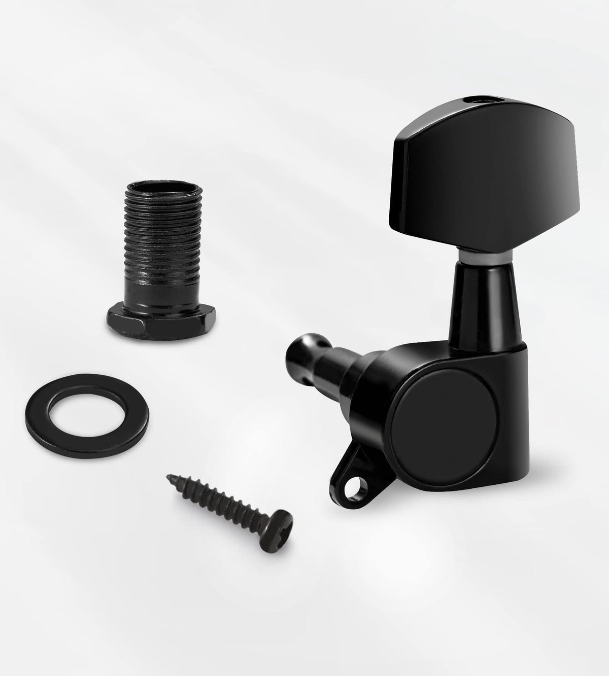 Vangoa 3L3R 6 Pieces Semi-Closed Guitar String Tuning Pegs Tuner Machine Heads Knobs Tuning Keys For Acoustic Or Electric Guitar, Chrome Features: 1. Chrome Tuning Peg Machine Heads. 2. 3-Per-Side.( 3L, 3R ). 3. Gear Ratio: 1:15. 4. Including Mounting Screws. Package Include: 6 X Machine Heads