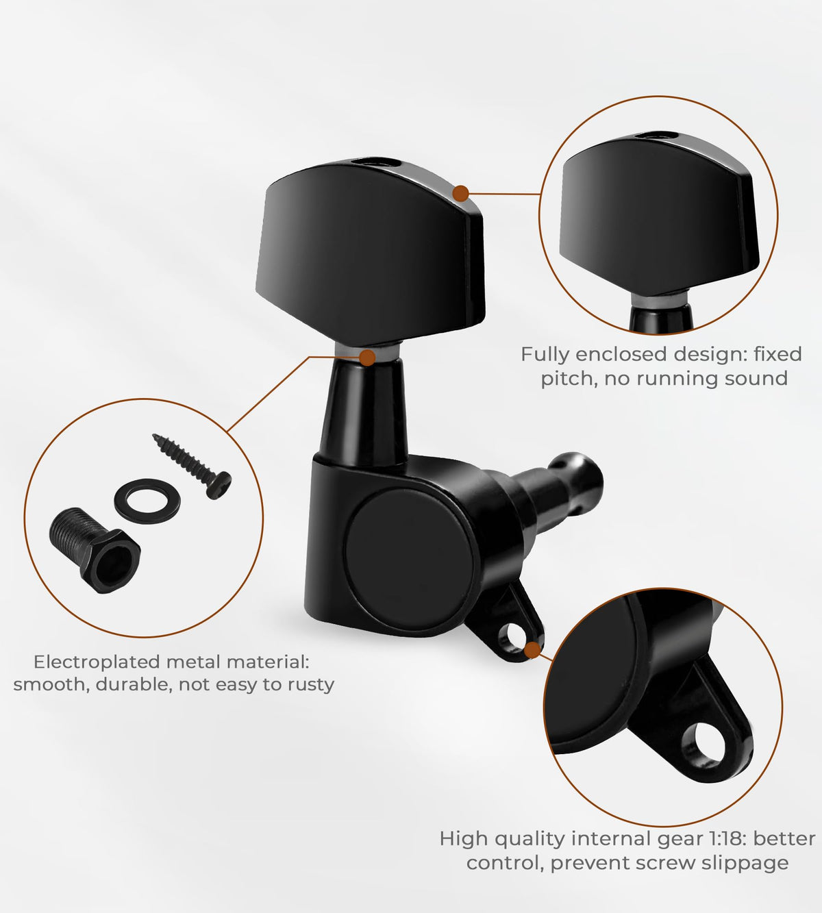 Vangoa 3L3R 6 Pieces Semi-Closed Guitar String Tuning Pegs Tuner Machine Heads Knobs Tuning Keys For Acoustic Or Electric Guitar
