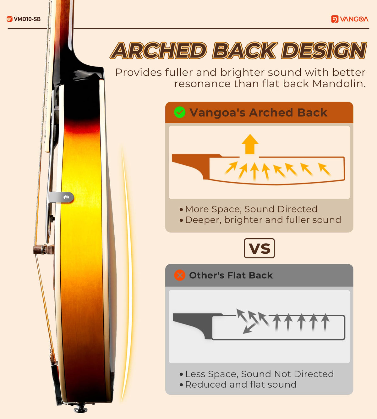Vangoa A Style 8 Strings Acoustic Mandolin Sunburst With Gig Bag Picks Extra Strings Tuner And Strap Features: 1. 2. Right Handed Mandolin With Tonewood Body And Solid Wood Bridge Brings A Warmer And Brighter Sound To You. 3. Chrome Plated Closed Gear Tuners And Tailpiece And Adjustable Truss Rod Inside The Neck Is To Keep The Mandolin Always In Tune And Adjusting The Strings Easier. 4. 8 Strings Traditional A Style Mandolin In Glossy Red Sunburst Finish Can Be Suitable For All Styles Of Music. 5. The Mandolin Comes With Guitar Picks, Pick-Up, Digital Clip-On Tuner, Extra Strings, Strap And Padded Gig Bag, Which Is Perfect For Beginner. Attention: The Strap And Picks Of Mandolin Will Come In Random Color. Specification: Top, Body Back: Basswood Neck: Mahogany Bridge: Mahogany Size: 26 Inch Weight: 3 Lb Finish Glossy Number Of Fret: 20 Color: Sunburst Hand Orientation: Right Material Of Strings: Steel What You Get: 1 X 26 Inch Acoustic Mandolin 1 X Padded Gig Bag 1 X Strap 1 X Extra Strings Set 1 X Clip-On Tuner 3 X Picks