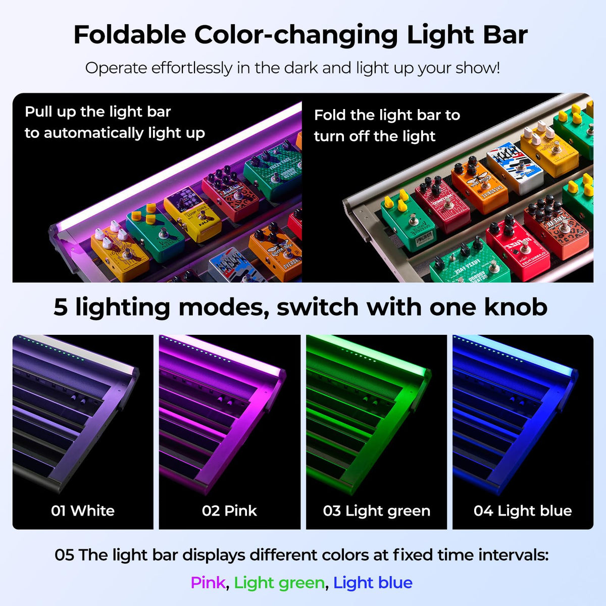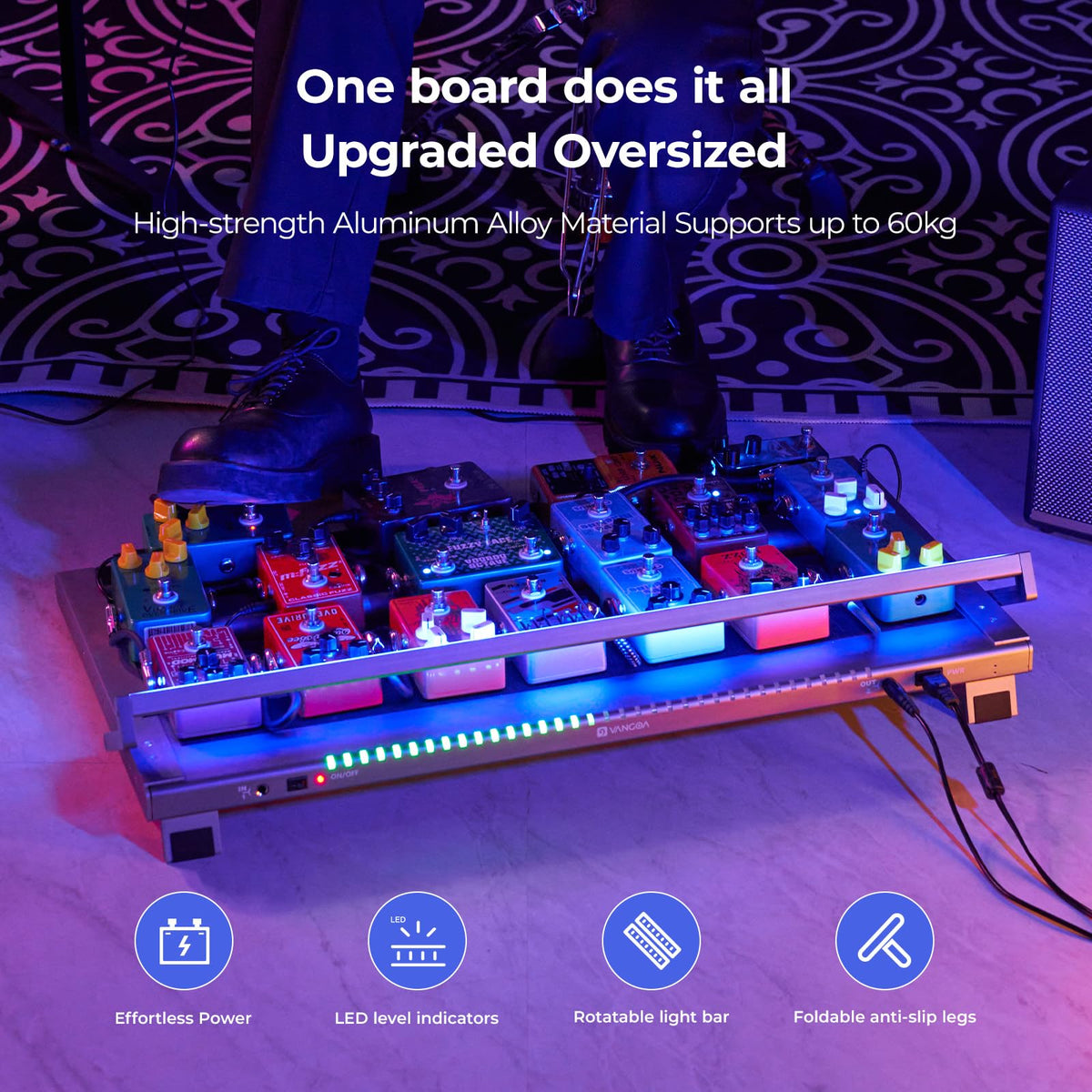 Vangoa Guitar Pedal Board With Built In Isolated Power Supply, Pd L Aluminum Alloy Folding Powered Guitar Pedalboard With Adjust