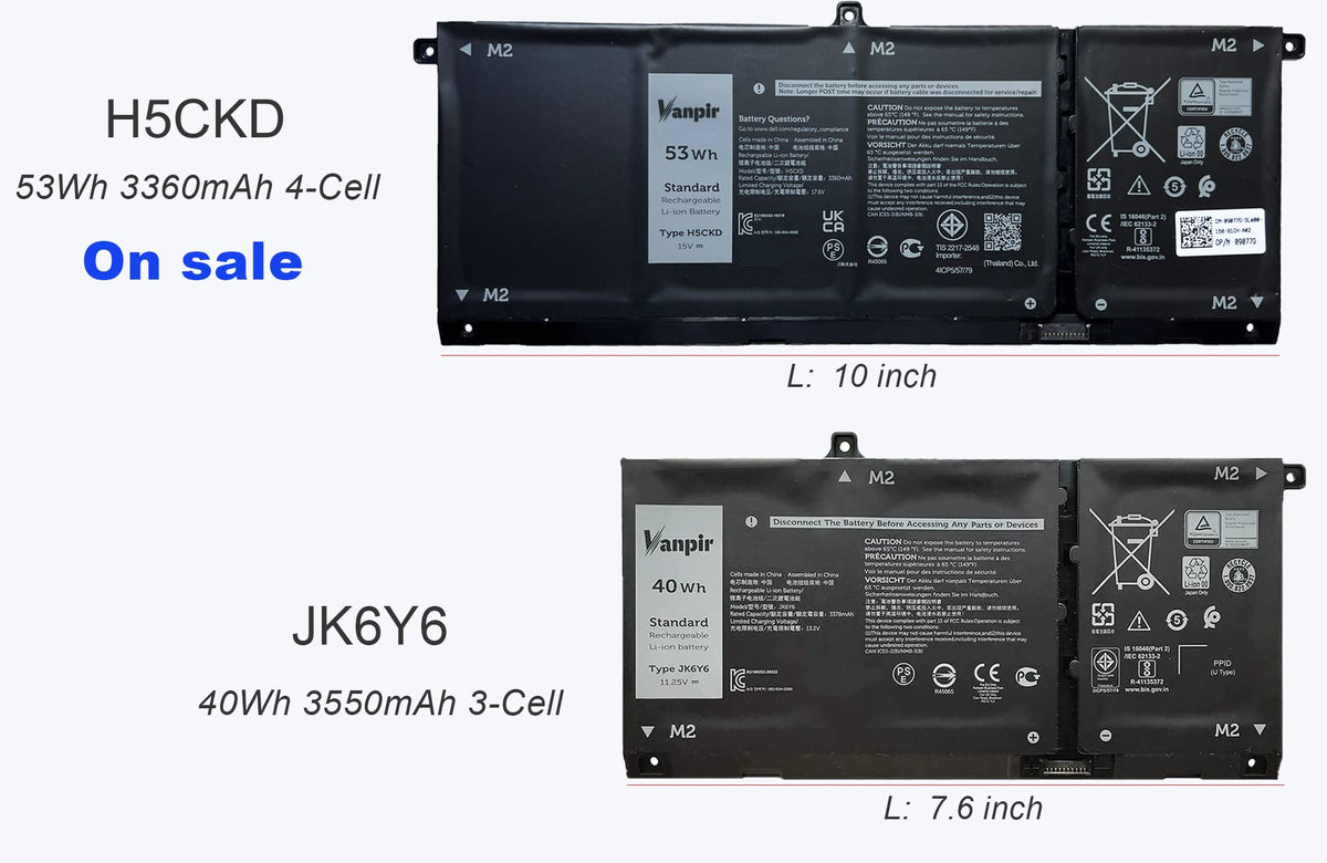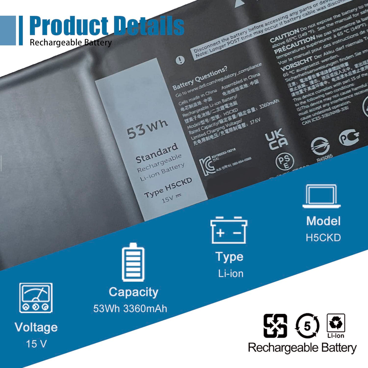 Vanpir H5Ckd Laptop Battery, 15V 53Wh 3360Mah Compatible With Dell Vostro 5300 5401 5501 Latitude 3410 3510 Inspiron 5300 5401 5