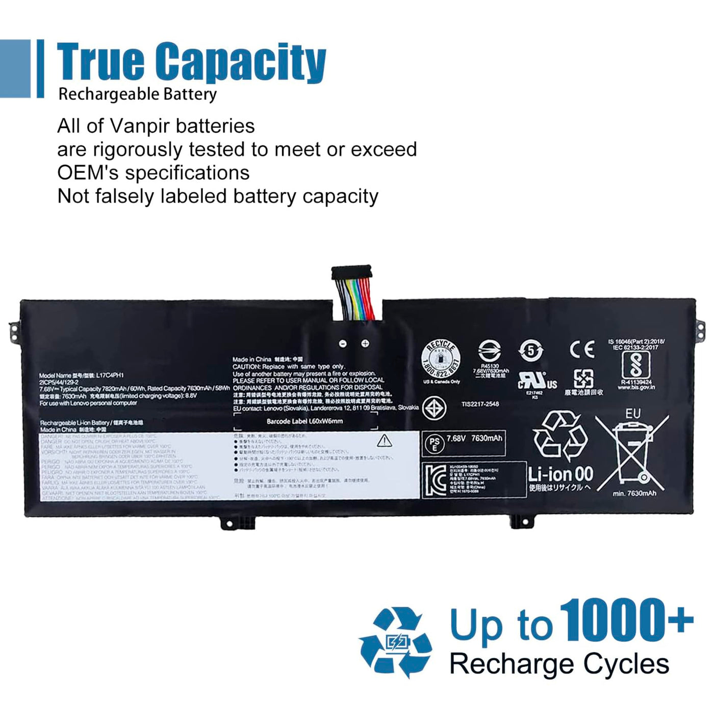 Welcome To Vanpir: We Are A Professional Laptop Battery Manufacturer, Dedicated To Manufacture And Provide High Quality Different Type Laptop Batteries For Our Customer. Specification: Model: L17C4Ph1 Battery Type: Li-Ion Voltage: 7.68V Capacity: 60Wh 7820Mah Location Of Connector And Cable Length: Please Refer To The Battery Picture And Compare With Your Original Battery Replacement Part Number: L17C4Ph1 5B10Q82425 5B10W67176 Sb10W67353 5B10Q82427 928Qa225H Compatible Models: (Use ''Ctrl+F To Find Your Model Quickly'') Yoga 7 Pro-13Ikb Series Yoga C930-13Ikb Series Yoga C930-13Ikb Glass Series Yoga C930-13Ikb-81Eq, Yoga C930-13Ikb-81Eq000Hge, Yoga C930-13Ikb-81C4, Yoga C930-13Ikb-81C4003Uge Yoga C930-13Ikb-81C4002Qmz, Yoga C930-13Ikb-81C4003Vge, Yoga C930-13Ikb-81C4008Jmz Yoga C930-13Ikb-81C4003Tge, Yoga C930-13Ikb-81C4002Xmz And More Note: For More Accurate, Please Check The Part Number Of Your Original Battery Packing Included: 1* L17C4Ph1 Battery 1* Instruction Manual Warm Tips Before Purchase: Please Open Your Laptop Case, Check And Confirm Your Original Battery Model And Appearance, Compared With Our Battery Image, Make Sure That'S What You Need. Especially The Location Of The Connector And The Cable Length (Long Or Short) Battery Maintenance Method For Optimal Use: ? When You Get The New Battery, Discharge The Battery To 5% (Not 0%), Then Charge And Cycle 3-4 Times To Wake Up The New Battery ? The Important Point Is To Perform A Full Discharge And Charge Every Other Month To Extend The Battery Life ? Do Not Connect Adapter For A Long Time While Using The Battery. It May Damage The Battery