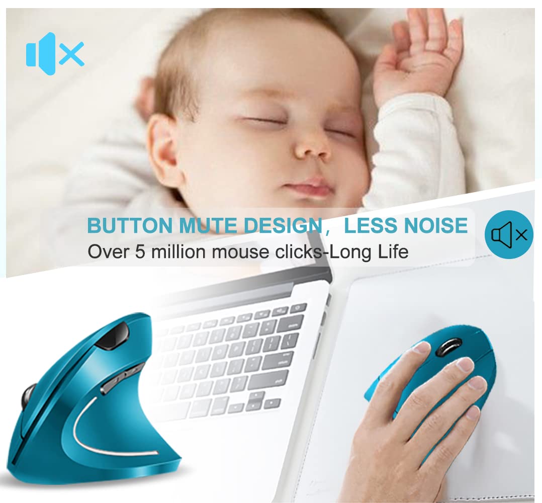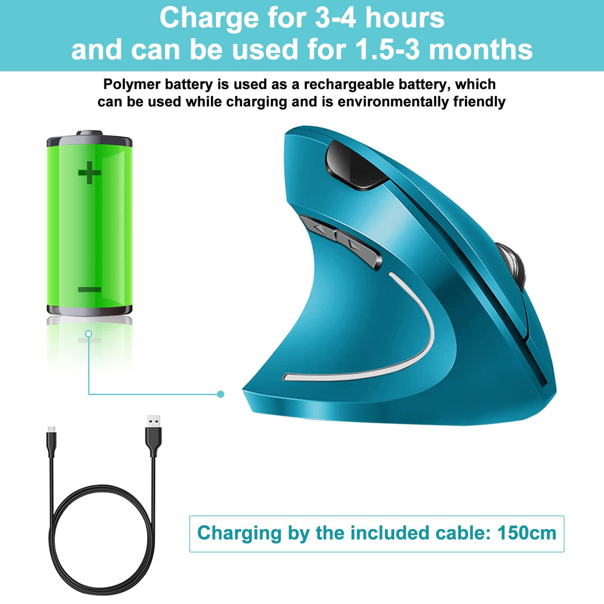 Ergonomic Wireless Mouse, Rechargeable Mouse 2.4Hz Vertical Wireless Optical Mice With Usb Receiver, 6 Buttons
