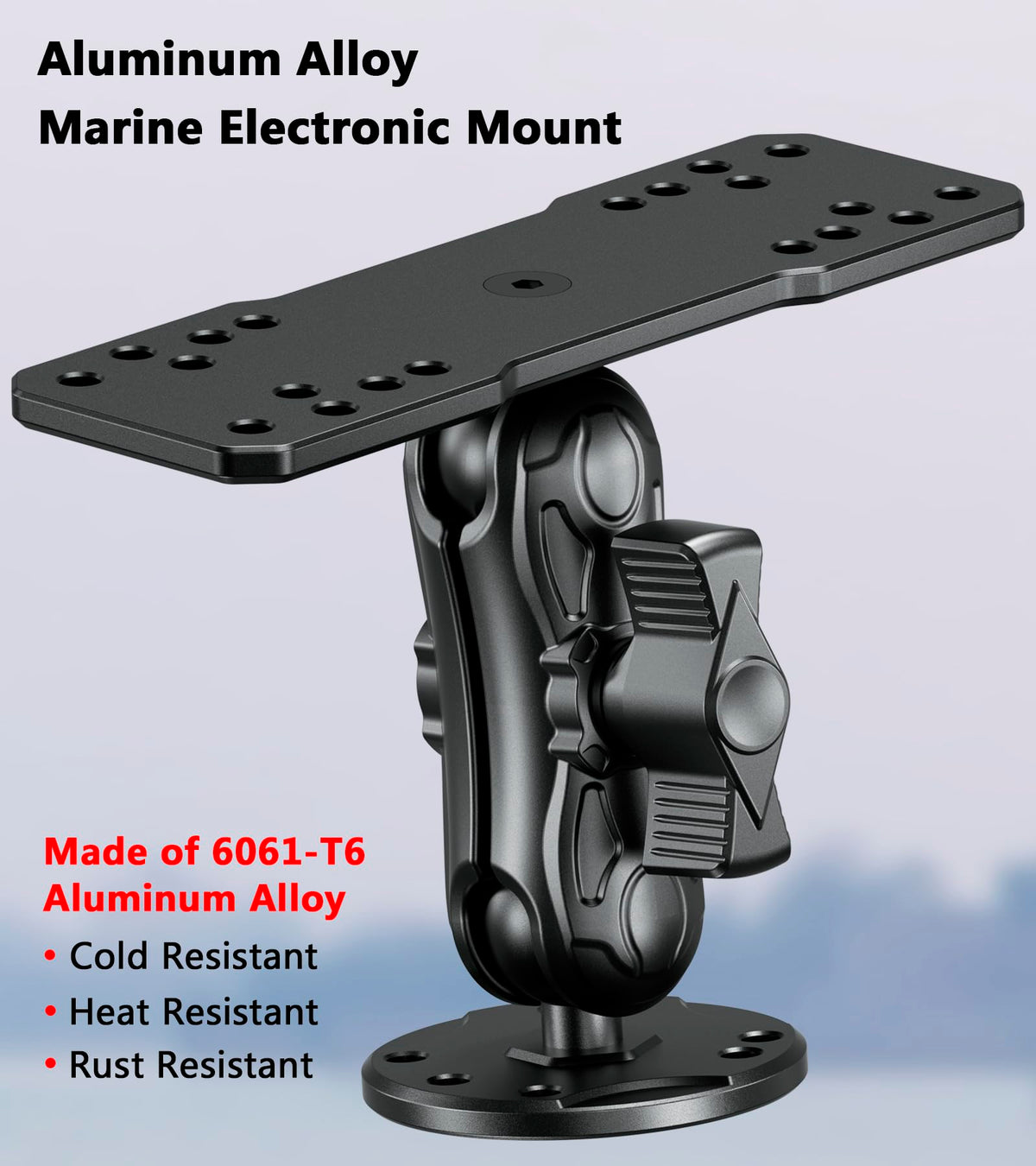 Vazeswin Aluminum Alloy Fish Finder Mount With B Size 1'' Ball Rectangle Plate & Round Base, 3.5'' Medium Arm Marine Electronic