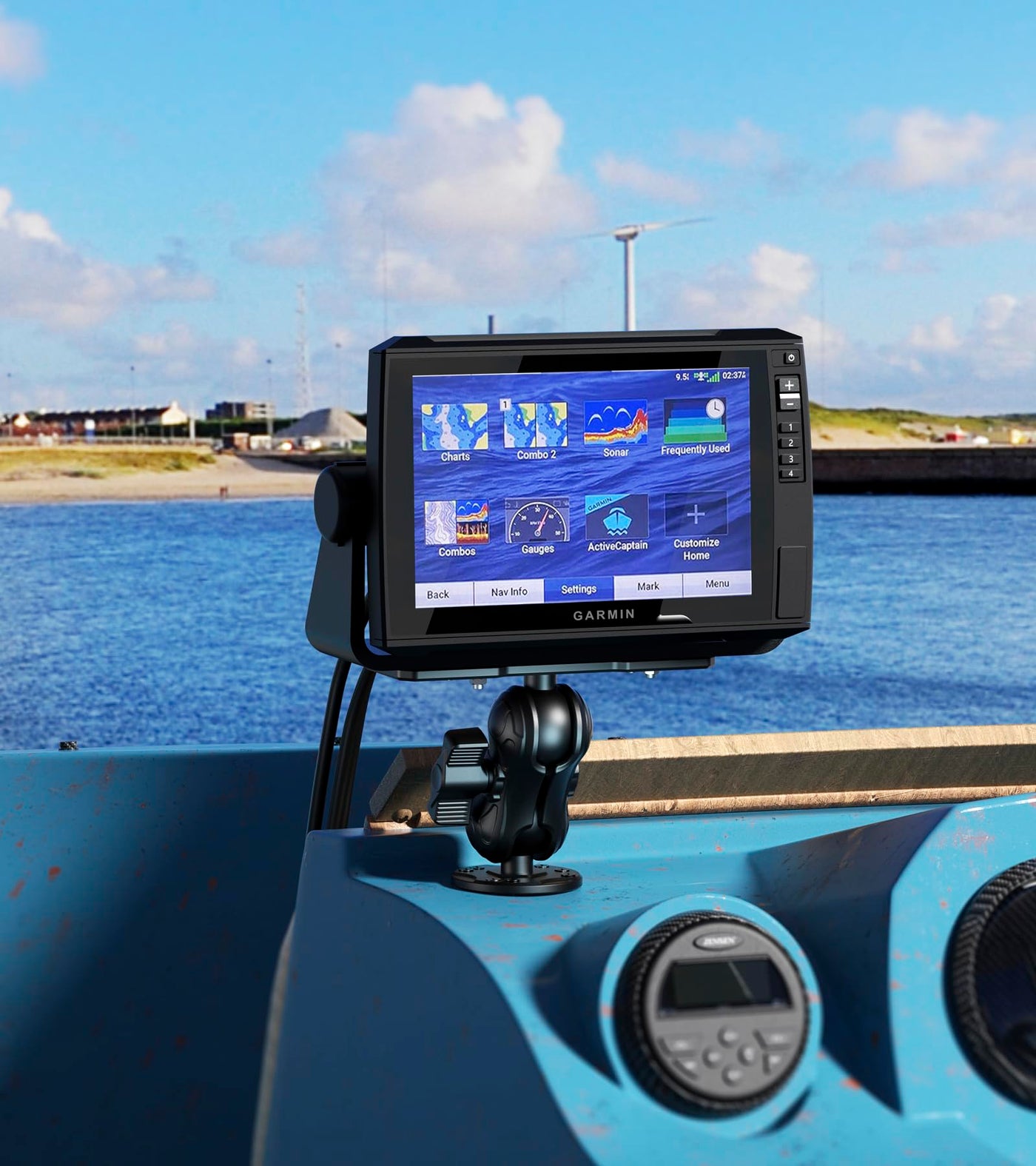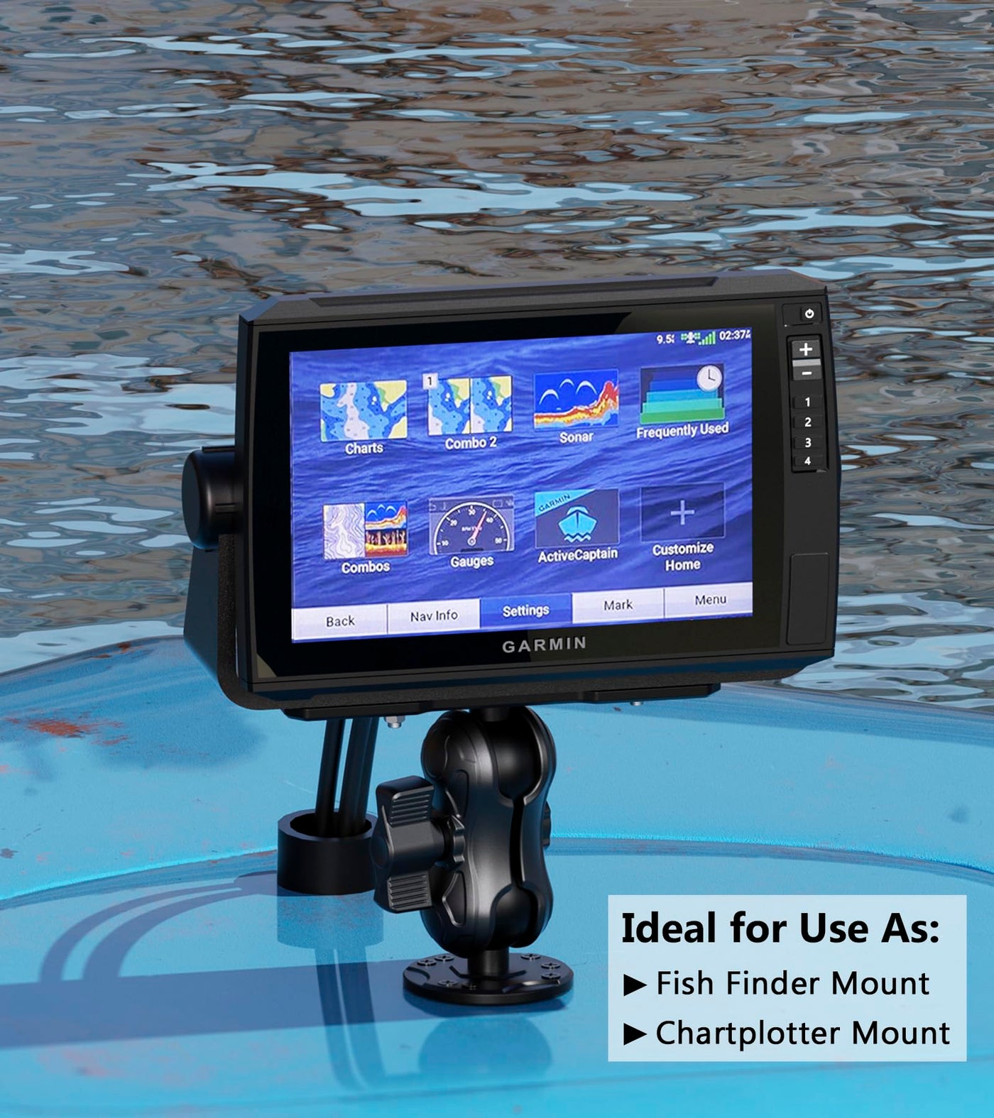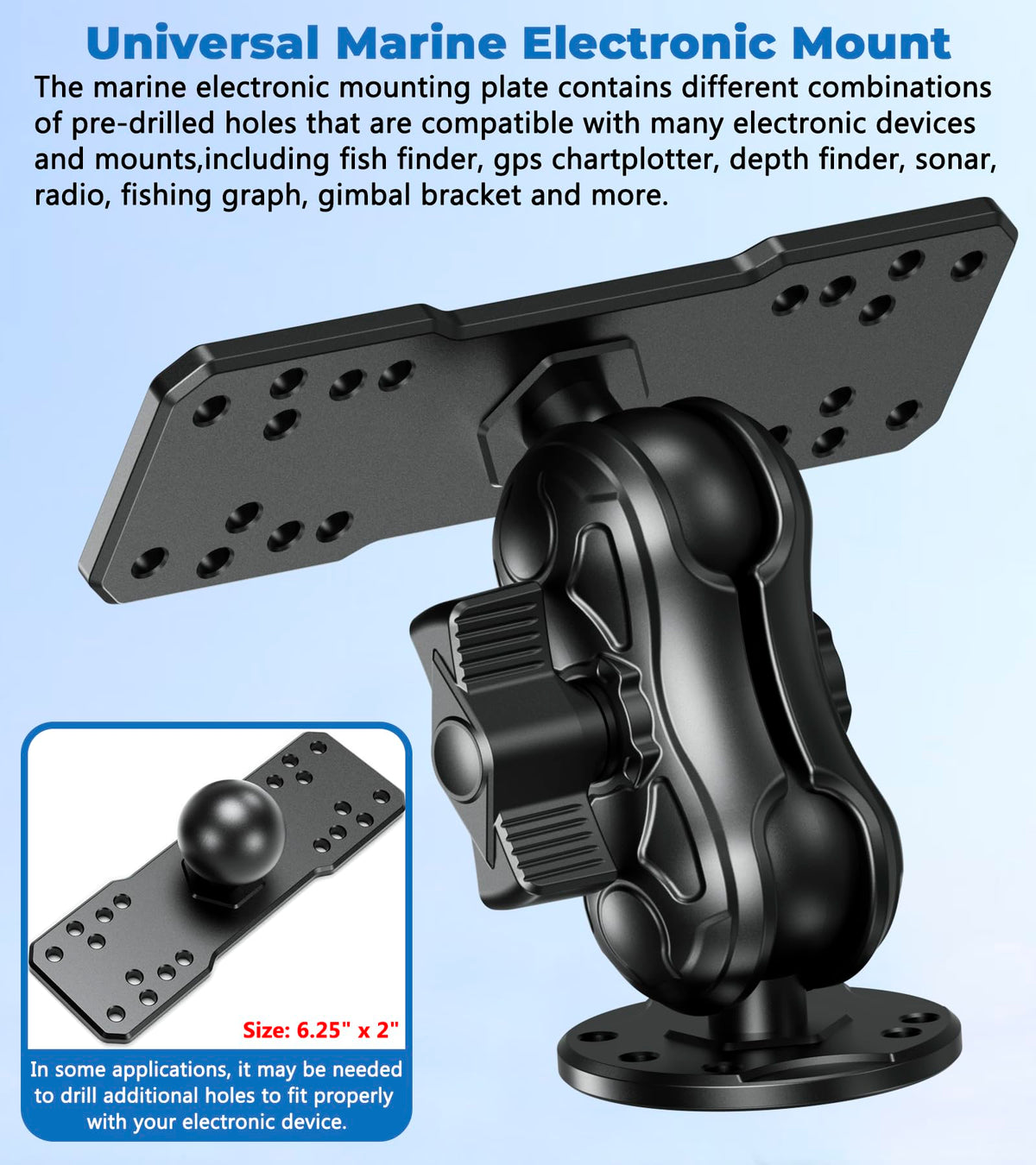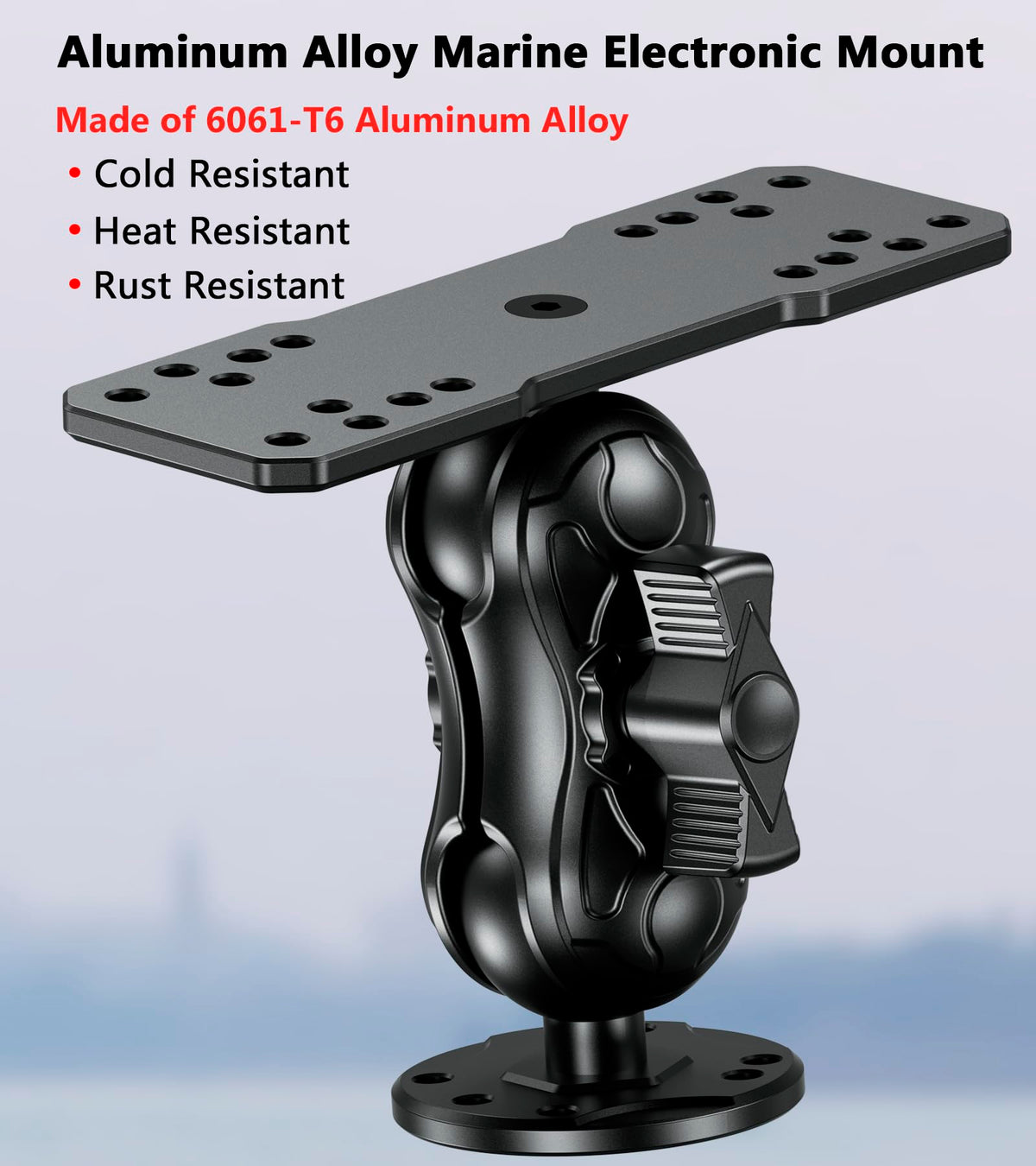 Vazeswin Aluminum Alloy Fish Finder Mount With C Size 1.5'' Ball Rectangle Plate & Round Base, 3.5'' Short Arm Marine Electronic