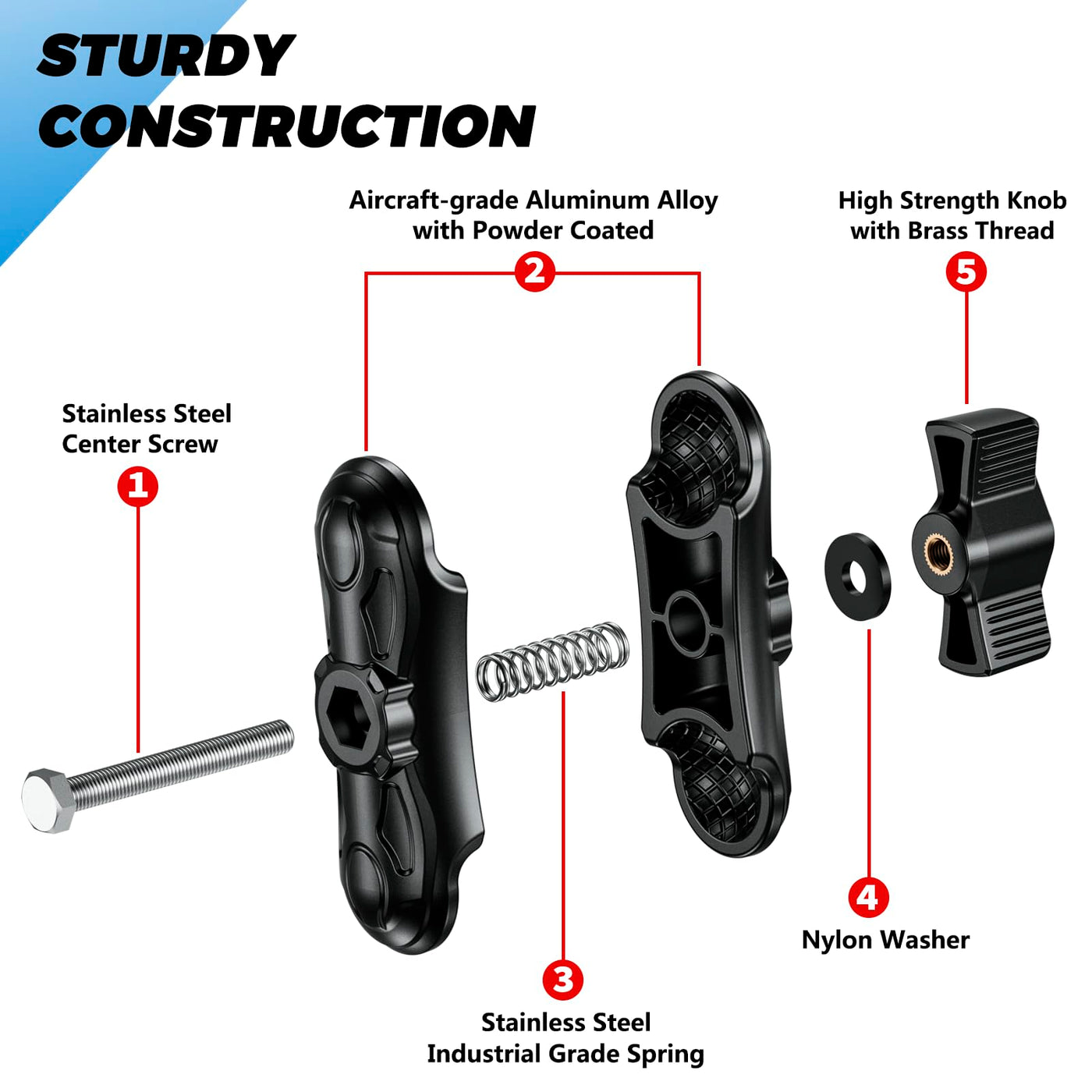 Vazeswin Double Socket Arm 3.5'' Aluminum Alloy Medium Arm Compatible With Ram Mount B Size 1'' Ball Components For Electronic D
