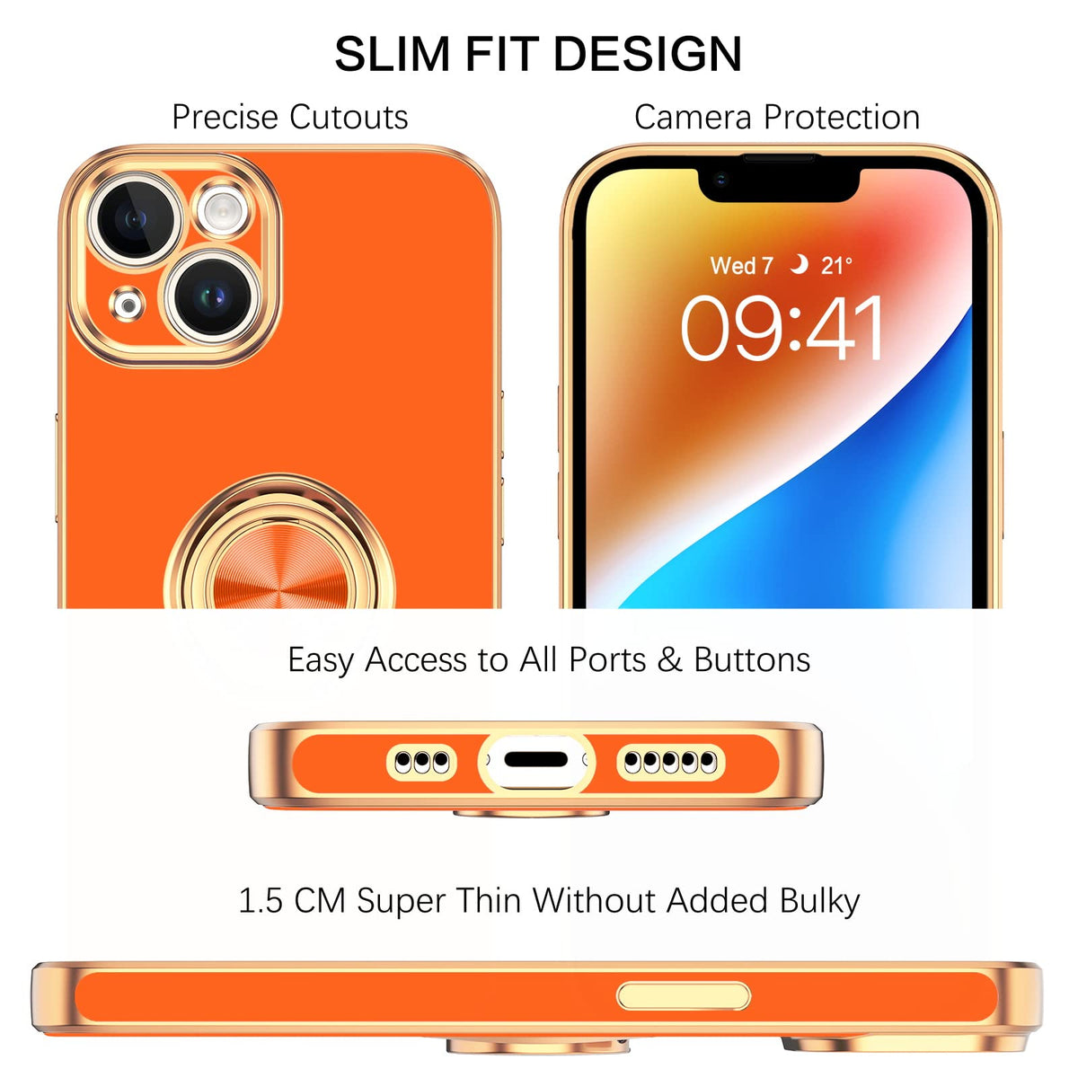 Compatible Phone Model ? Only For 6.1 Inch Apple 14 2022(Not Compatible Any Other Models.)Updated & Stylish Design ? Love The Feeling Of A Case Free Phone In Your Hands? This Updated Orange Slim Case Fits The Bill. Its Simple,Thin And Light, Add No Bulky To Your Apple 14. ? The Back Of The Case Is Smooth And Pretty ,And It Doesn'T Catch On The Fabric Of Clothes Or Handbags, Keeping A Nice Looking For Your Phone. 360 Rotatable Ring & Flexible Kickstand? Its Snug Fit With A Built-In 360 Rotatable Ring Holder, Provide You A Safe And Sound Non-Slip Grip.? Surprisingly! The Ring Can Be A Handy Kickstand Which Is A Great Bonus When You Are Watching A Movie, Face-Time, Or Just Need To Have The Phone/App In A Landscape Mode.? It Also Supports Magnetic Car Mount For Easier Usage When Driving.Durable & Protective?Theres A Decent Amount Of Lip Protection And The Camera Is Nestled In A Little Snug Fit To Stop Debris And Lens Scratching.? With Fine Workmanship And Premium Material, This Case Is Durable Enough For Longtime Usage. Packaged ? 1 X Case For 14 6.1 Inch.(Phone And Screen Protector Not Included) Things You Should Know:Q: Can I Charge Wirelessly With This Case On? A: No,It Doesnt Work With The Wireless Charging Pad.You May Have To Take It Off For The Charger To Work,Which Is Simple With This Case. Q: Are The Buttons Easily Accessible? A: Yes,The Buttons Are Easy To Push And All Ports Are Readily Accessible So You Don'T Need To Wiggle Any Of Your Cables To Make Sure It Connects Securely.Q: Can I Use A Screen Protector With This Case? A: Yes,This Veningo Phone Case Is Very Friendly To Screen Protector.You Can Attach A Screen Protector Before Put The Case On So That To Make Your Phone A Solid Package.Feel Free To Contact Us If Any Questions,Veningo Team Is Always Here For You!