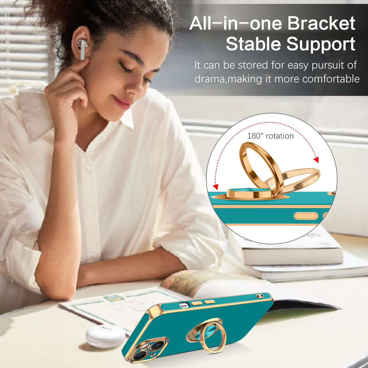 Veningo Iphone 14 Case, Phone Cases For Iphone 14, Slim Fit Soft 360 Ring Holder Kickstand Magnetic Car Mount Supported Easy Cle