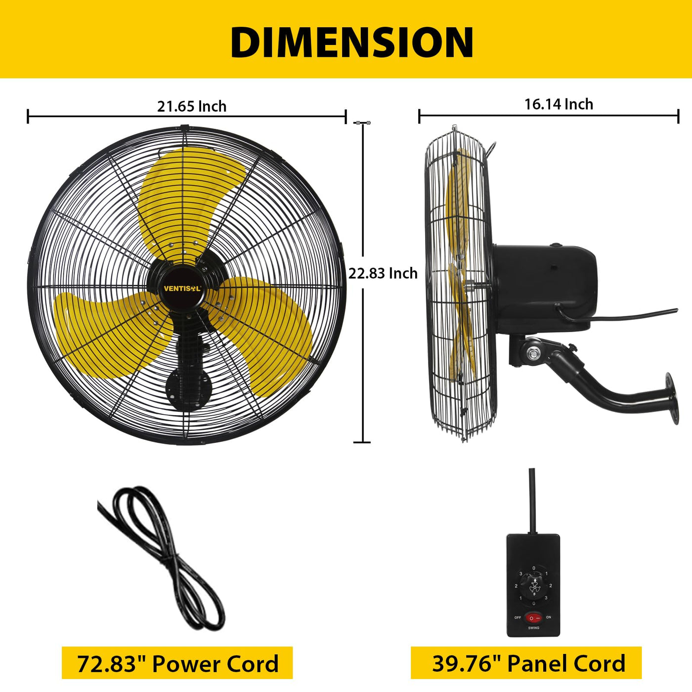 Ventisol 20 Inch High Velocity Oscillation Wall Mounted Fan For Porch, Greenhouse,Workshop,Home, Patio,-3 Speed -4,950Cfm - Household,Commercial,Industrial Use,