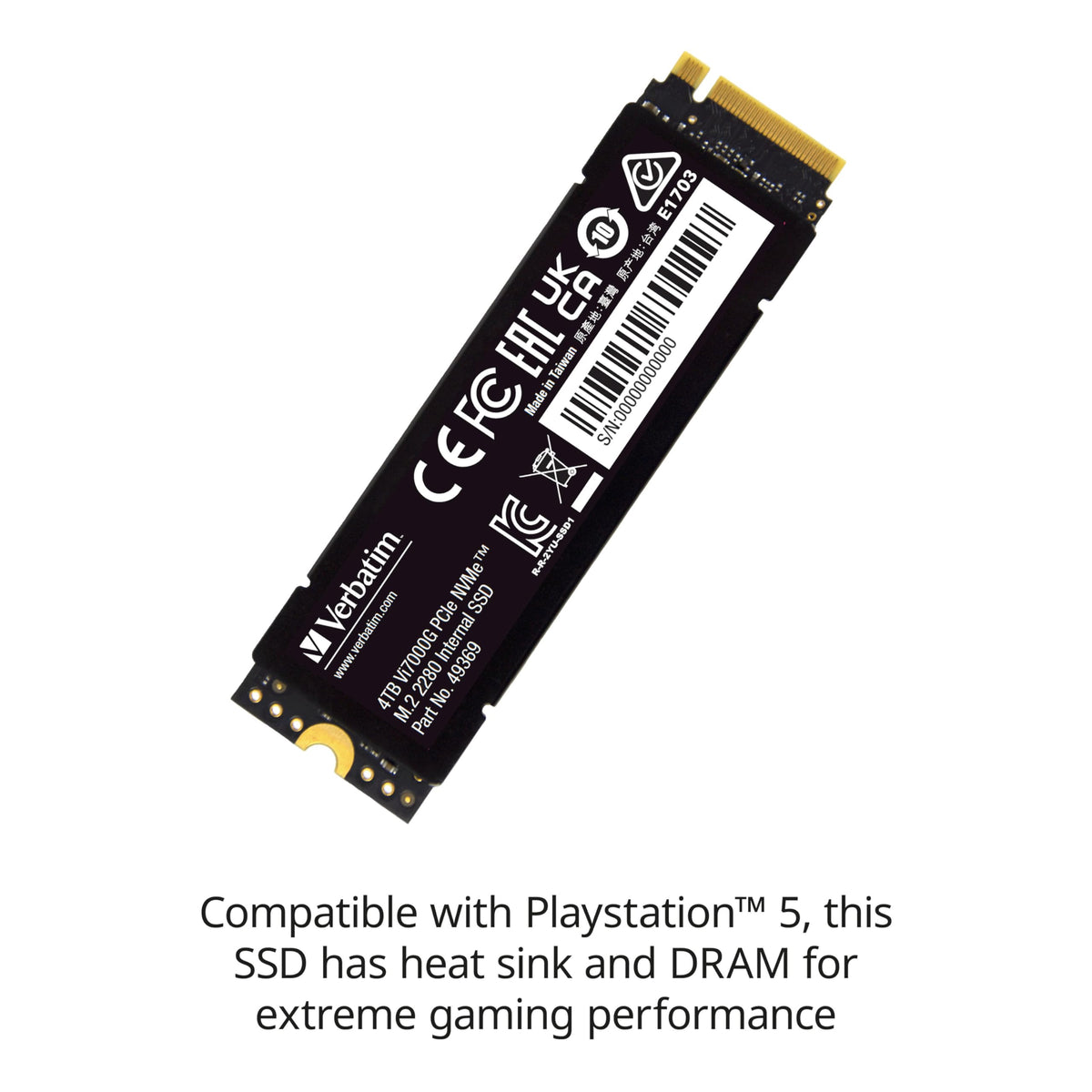 Verbatim'S Vi7000 Pcie Nvme M.2 2280 Internal Ssds Are Designed For Users Who Demand The Ultimate In Speed And Performance. Designed For Gamers And High-Power Users, The Vi7000 Is The Ultimate Upgrade For Your Gaming Rig Or Console. Being Playstation 5 Compatible, The Vi7000 Allows You To Store And Play Ps5 Games Directly From The Drive. Thanks To The Pcie Nvme Gen 4.0 X4 Interface, You Can Enjoy Blazing Fast Data Transfer Speeds, Up To 6X Faster Than Sata-Based Ssds. Transfer Multiple Or Large Files With Ease With Read Speeds Up To 7000Mb/S And Write Speeds Up To 5000Mb/S.* The Small M.2 2280 Form Factor Saves Space Without Sacrificing Performance, Even With Limited Chassis Or Motherboard Space. It Is Equipped With A Heat Sink And Dram Cache For Extreme Performance, Ensuring That Your System Always Runs At Its Peak. Verbatim'S Vi7000 Pcie Nvme M.2 2280 Internal Ssds Are Backed By A 2-Year Limited Warranty.