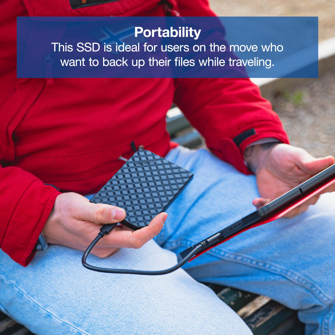 Ideal For Users On The Move, The Store N Go Portable Ssd Provides A Fast And Safe Solution For Expanding Your Storage And Backing Up Your Files. The Usb 3.2 Gen 1 Interface Features Data Transfer Speeds Up To 5Gbps** So You Can Move Those Large Files And Do The High Capacity Photo Editing When You Need To. Compatible With Both Pc And Mac Operating Systems, The Ssd Interface Is Usb 3.2 Gen 1* For Super-Fast Data Transfer Speeds. The Ssd Handles Large Data Transfers Quickly - Ideal For Video Editing, Moving Large Amounts Of Data Or Maximizing Gaming Performance. The Ssd Includes A Usb-C To Usb-A Cable As Well As A Usb-A To Usb-C Adapter For Connection To A Range Of Devices. Nero Backup Software Is Also Available With This Ssd, Providing The Ability To Backing Up Files On A Compatible Pc**. Verbatims Store N Go Portable Ssds Are Backed By A 2-Year Limited Warranty. Solid State Drive With No Moving Parts For High Reliability And Silent Operationcompact, Slim Designhigh Speed Data Transfer - A Fast And Safe Solution To Expand Storage And Backup Filesusb 3.2 Gen 1 Connection With Usb-C Adapterusb-C To Usb-A Cable And Usb-A To Usb-C Adapter Includednero Backup Software (Windows Os Only)Quick Start Guide And User Manual Included2 Year Limited Warranty *For Optimal Performance, The Drive Must Be Connected To A Usb 3.2 Gen 1 Host Controller **Actual Transfer Speeds Depend On File Size, Computer Performance, And Operating System