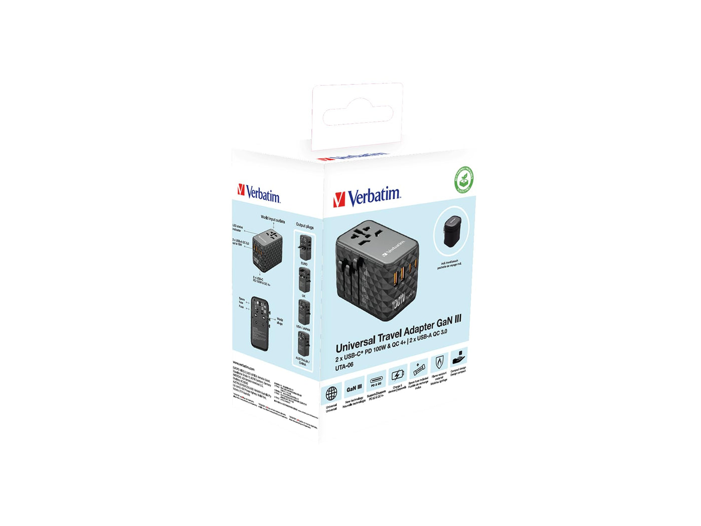 Verbatim Uta 06 Gan Iii Universal Travel Adapter 100W Usb C, Usb A