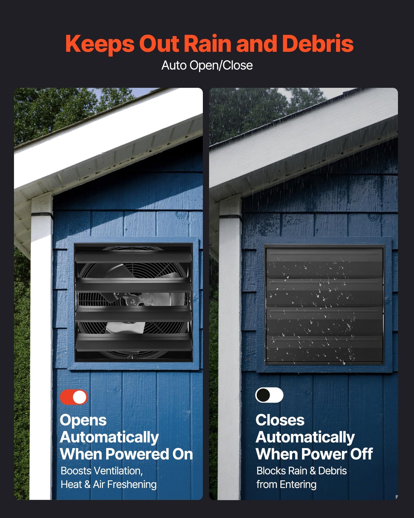 Rapid Venting: This Shutter Exhaust Fan Delivers 2900 Cfm To Quickly Expel Stale Air, Floating Dirt, Heat, And Smells, Keeping Indoor Air Fresh. Also Works As A High-Airflow Exhaust Fan For Sheds And Workshops | Smart Programming: This Fan Features An Intelligent Controller With Temperature And Humidity Triggers, Offering Up To 10 Speed Settings That Automatically Adjust To Changing Conditions. Multiple Modes, Timer And Alarm, Full Control For Any Situation | Premium Ec Motor: 1400 Rpm And 98W Provide Up To 9 M/S Airflow While Running Smoothly With Low Noise, Efficient And Stable For A Quiet, Comfortable Experience. Ideal As An Attic Fan For Year-Round Ventilation | Tough Build: All-Metal Steel Construction Offers High Rigidity, Deformation-Resistant, And Handles Damp And Rain, More Sturdy Than Plastic And Ready For Harsh Weather | Rain Guard: Shutters Open When Powered For Ventilation And Deodorizing, Then Close When Off To Block Rain And Small Things, Reliable Protection For An Attic Exhaust Fan Setup