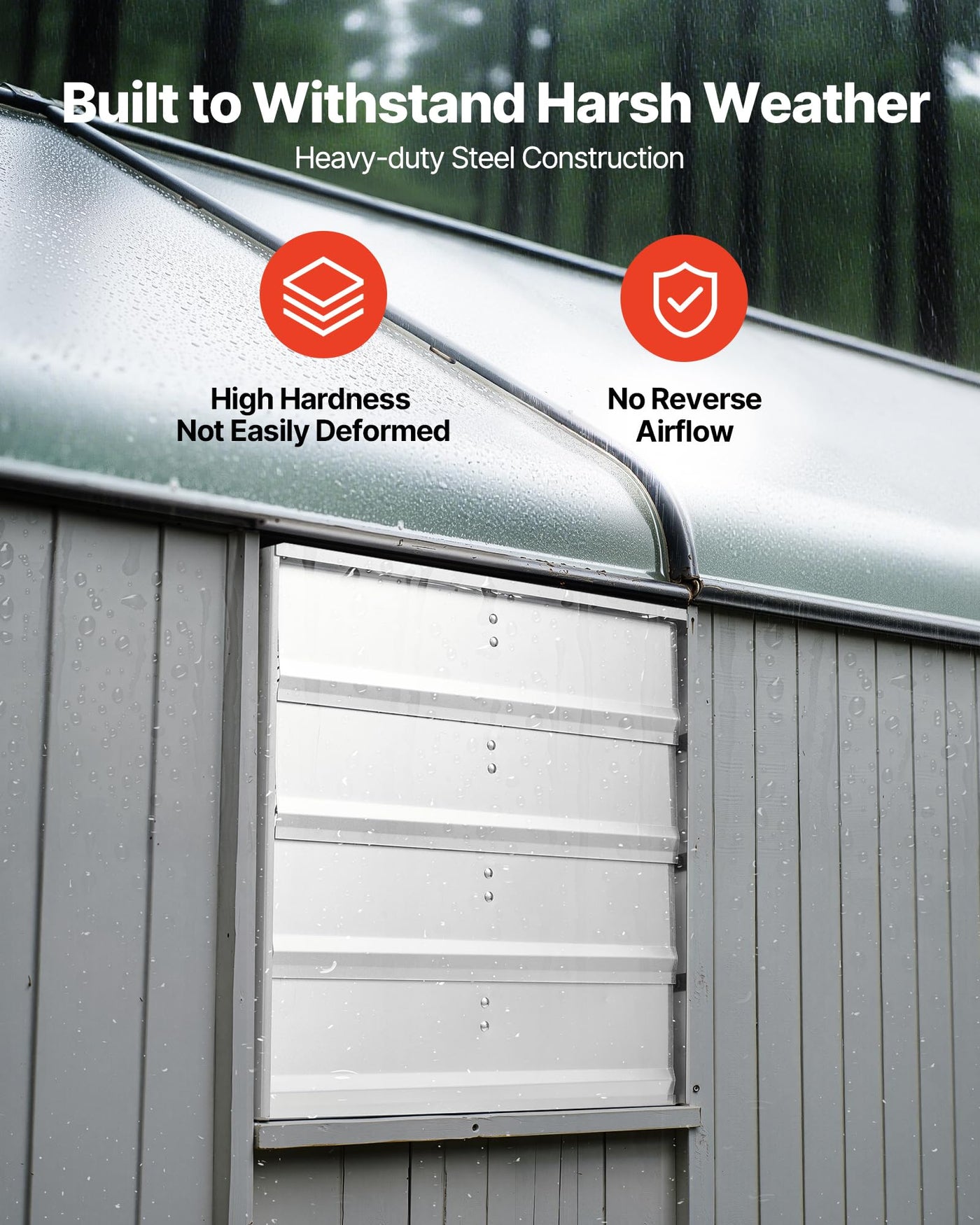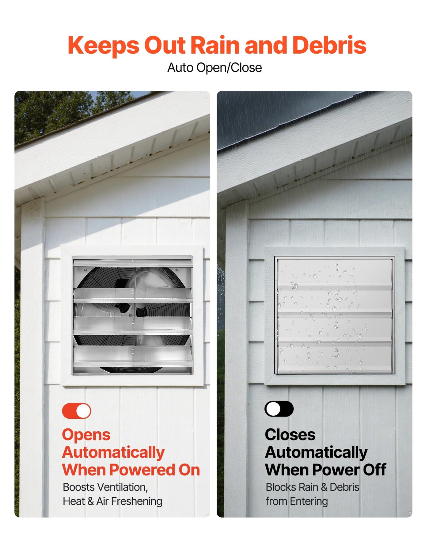Rapid Venting: This Shutter Exhaust Fan Delivers 2200 Cfm To Quickly Expel Stale Air, Floating Dirt, Heat, And Bad Smells, Keeping Indoor Air Fresh. Also Works As A High-Airflow Exhaust Fan For Sheds And Workshops | Premium Ac Motor: 1450 Rpm And 117W Provide Up To 6.8 M/S Airflow While Running Smoothly With Low Noise, Efficient And Stable For A Quiet, Comfortable Experience. Ideal As An Attic Fan For Year-Round Ventilation | Tough Build: All-Metal Steel Construction Offers High Rigidity, Deformation-Resistant, And Handles Damp And Rain, More Sturdy Than Plastic And Ready For Harsh Weather | Rain Guard: Shutters Open When Powered For Ventilation And Deodorizing, Then Close When Off To Block Rain And Small Things, Reliable Protection For An Attic Exhaust Fan Setup | Effortless To Use: Comes With A Prewired Power Cord, No Wiring Needed. Quick Installation For Fresher Air Fast; Great As A Garage Exhaust Fan Upgrade