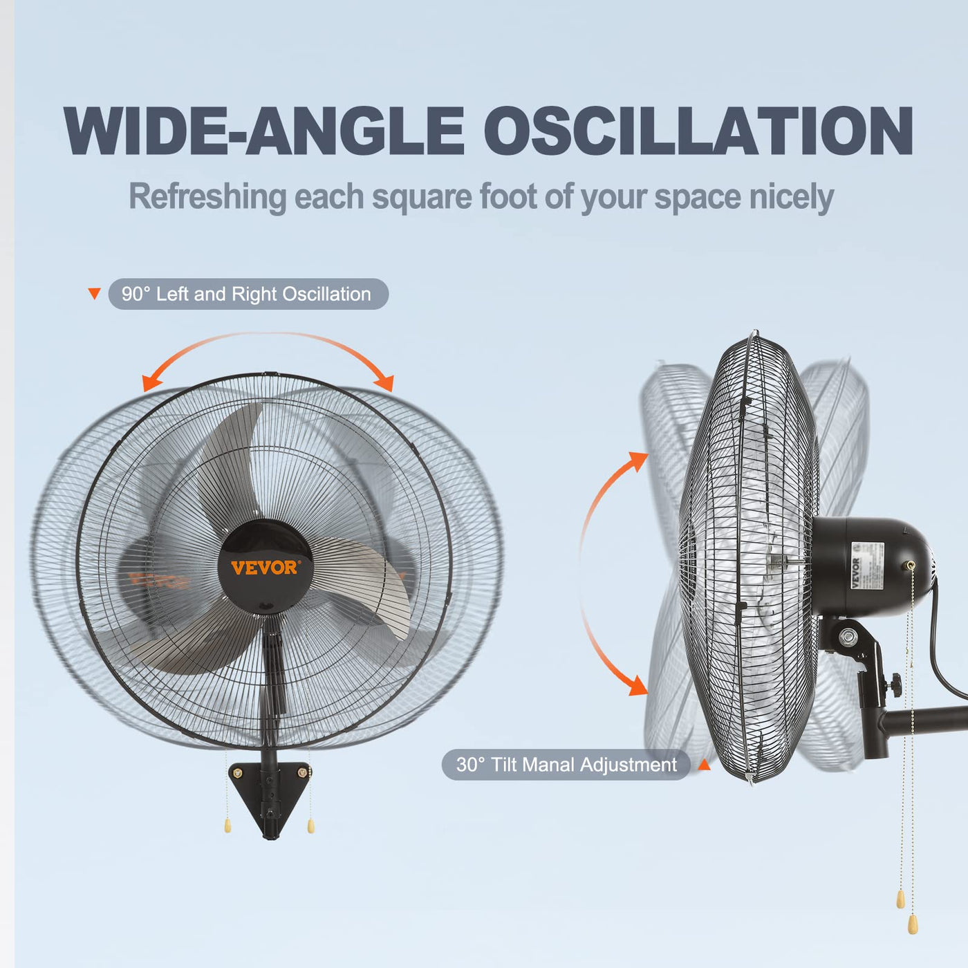 Q: Can this wall fan be used in commercial settings?A: Yes, the VEVOR wall-mounted fan is designed for both residential and commercial use, making it ideal for warehouses, workshops, garages, and outdoor areas.