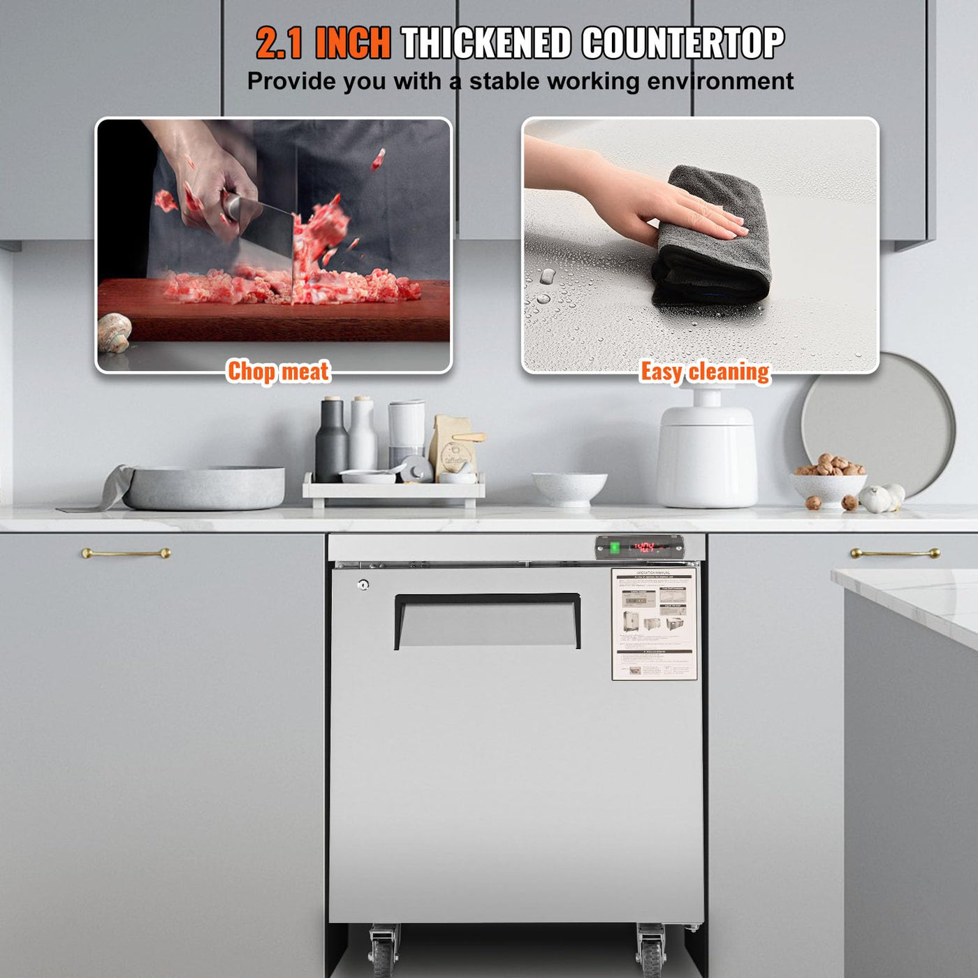 Vevor 28 W Commercial Refrigerator, Undercounter Worktop Refrigerator, 7.4 Cu. Ft Thick Stainless Steel Refrigerated Food Prep S