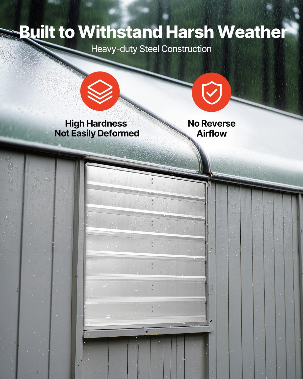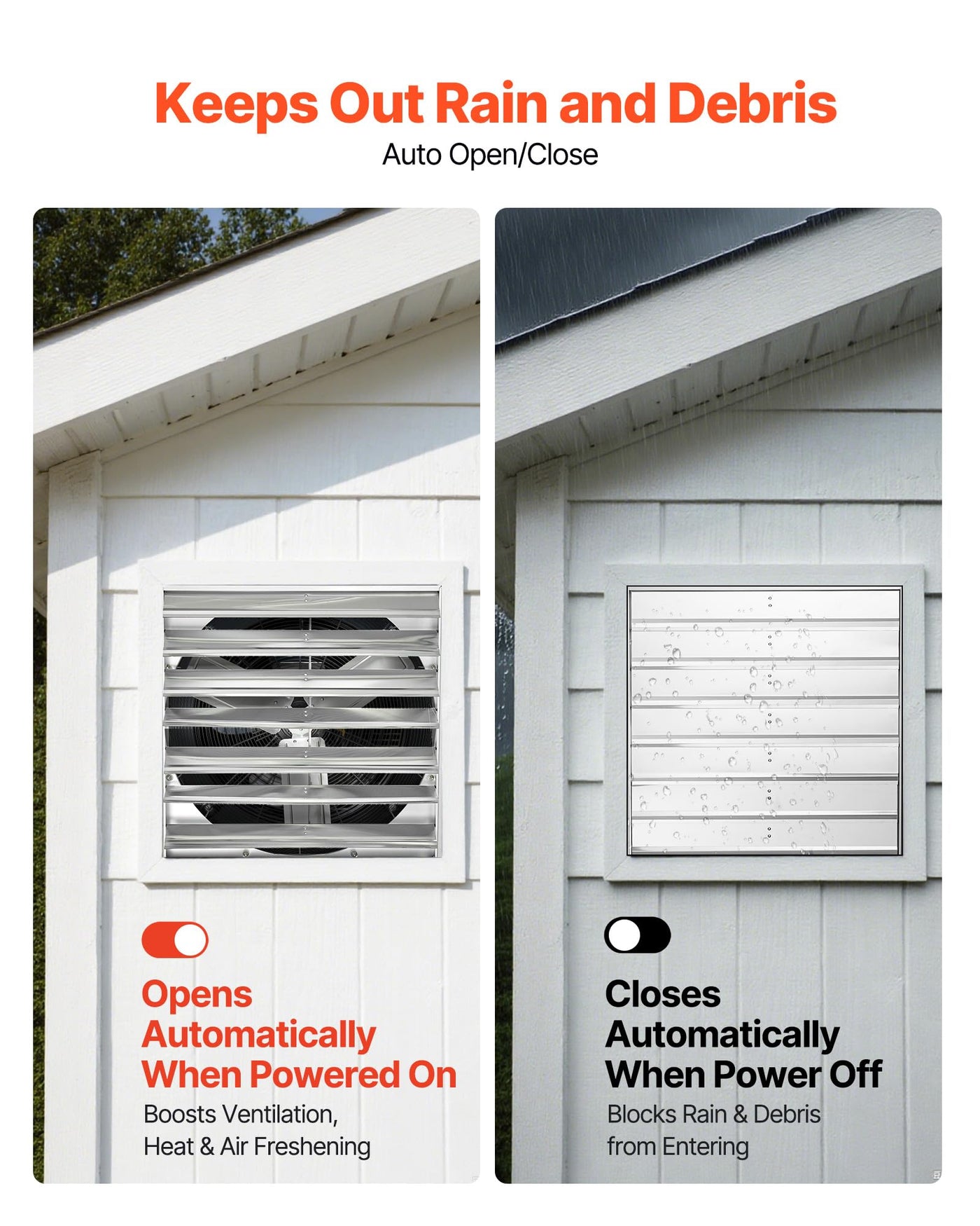 Rapid Venting: This Shutter Exhaust Fan Delivers 6900 Cfm To Quickly Expel Stale Air, Floating Dirt, Heat, And Bad Smells, Keeping Indoor Air Fresh. Also Works As A High-Airflow Exhaust Fan For Sheds And Workshops | Premium Ac Motor: 960 Rpm And 185W Provide Up To 5.7 M/S Airflow While Running Smoothly With Low Noise, Efficient And Stable For A Quiet, Comfortable Experience. Ideal As An Attic Fan For Year-Round Ventilation | Tough Build: All-Metal Steel Construction Offers High Rigidity, Deformation-Resistant, And Handles Damp And Rain, More Sturdy Than Plastic And Ready For Harsh Weather | Rain Guard: Shutters Open When Powered For Ventilation And Deodorizing, Then Close When Off To Block Rain And Small Things, Reliable Protection For An Attic Exhaust Fan Setup | Effortless To Use: Comes With A Prewired Power Cord, No Wiring Needed. Quick Installation For Fresher Air Fast; Great As A Garage Exhaust Fan Upgrade
