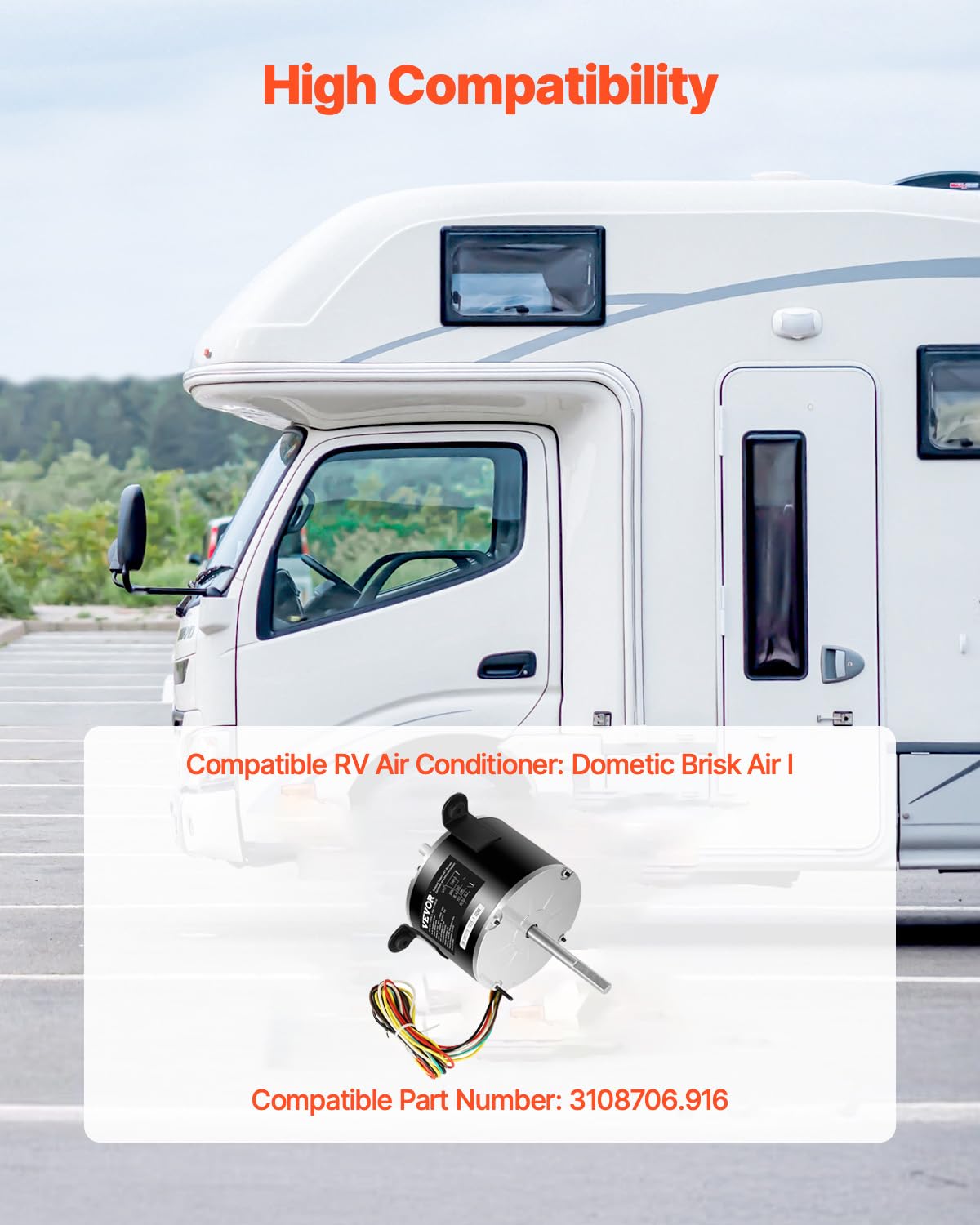 Vevor 3108706.916 Rv Ac Fan Motor Compatible With Dometic Brisk Air I Model - Single Phase, 1/5Hp Ac115V 2.6A 1650 Rpm (3 Speeds