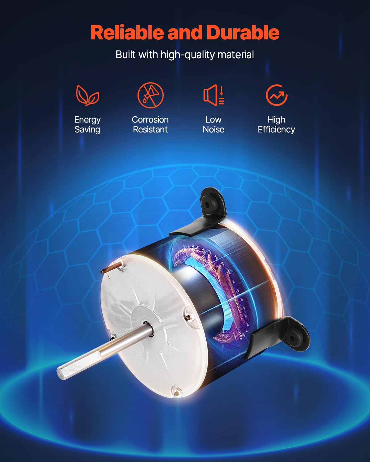 Key Features: 1/5 Hp, Single Phase, Full Load Amp: 2.6A, Voltage: Ac115V 60Hz, 3 Speeds - 1650/1500/1350 Rpm, 0.5-Inch Shaft Diameter. | Compatible Model: This 3108706.916 Rv Ac Fan Motor Is Compatible With Dometic Brisk Air I Models. Replacement Part Number: 3108706.916 | Convenient Accessory: This Rv Air Conditioner Motor Comes With A Cbb65 5Uf/370V Capacitor, Eliminating The Need To Purchase A Compatible Unit Separately, Ensuring Stable And Efficient Operation Of The Motor. | Safety And Durability: Housed In A Sturdy Metal Casing, Our Rv Rooftop Air Conditioner Motor Exhibits High Strength And Corrosion Resistance, Providing Reliable Protection And Extending Its Service Life. | Easy Installation: Vevor Rv Ac Fan Motor Is Designed For Hassle-Free Installation. Simply Follow The Motors Wiring Diagram For A Smooth Setup, Ensuring Proper Connection And Functionality.