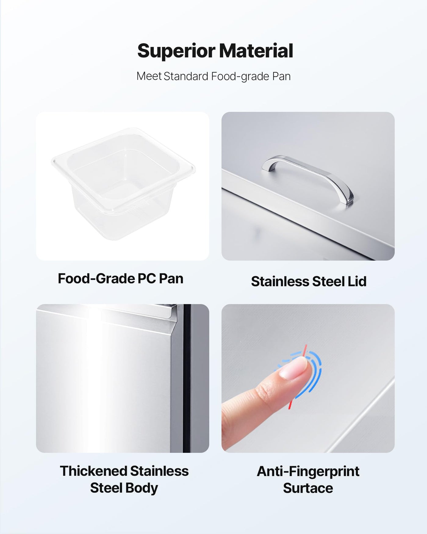 12.5 Cu.Ft. Capacity: Skilled In Cold Storage And Freshness, This Refrigerated Prep Table Includes A 48.4 X 9.5 Inch Cutting Board For Sandwich-Making. The Perforated Shelf Has 12 Stainless Steel 1/6 Pans That Are Heavy-Metal Free And Easy To Clean | Quick & Efficient Cooling: Featuring A Cubigle Compressor And Finned Copper Tubing, This Sandwich Prep Table Ensures Reliable Cooling And Meets Ul, Csa Tested Standards For Tested Performance | Premium Material: Food-Grade Pc Pans Meet Ansi Tested Standards, Providing Peace Of Mind For Food Storage. The Sandwich Fridge With Stainless Steel Build Is Durable And Easy To Clean, With Brake Casters For Smooth Mobility | Electronic Temperature Control: With A Digital Control Screen, This Sandwich Table Maintains Temperatures At 33~41?, So Vegetables, Sauces, Fruits, And Meats Stay Fresh | Auto-Closing Door: When The Door Opens Within 90