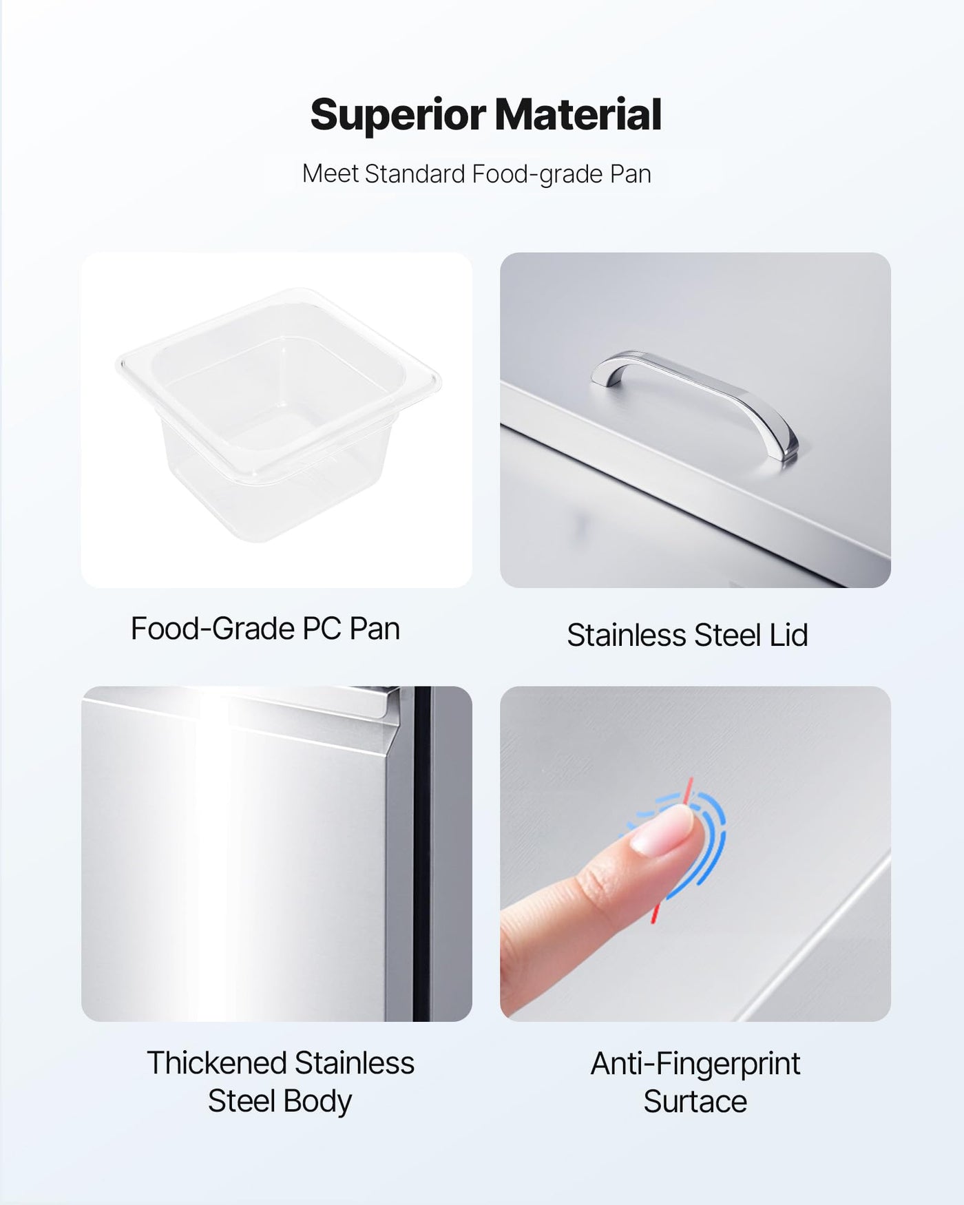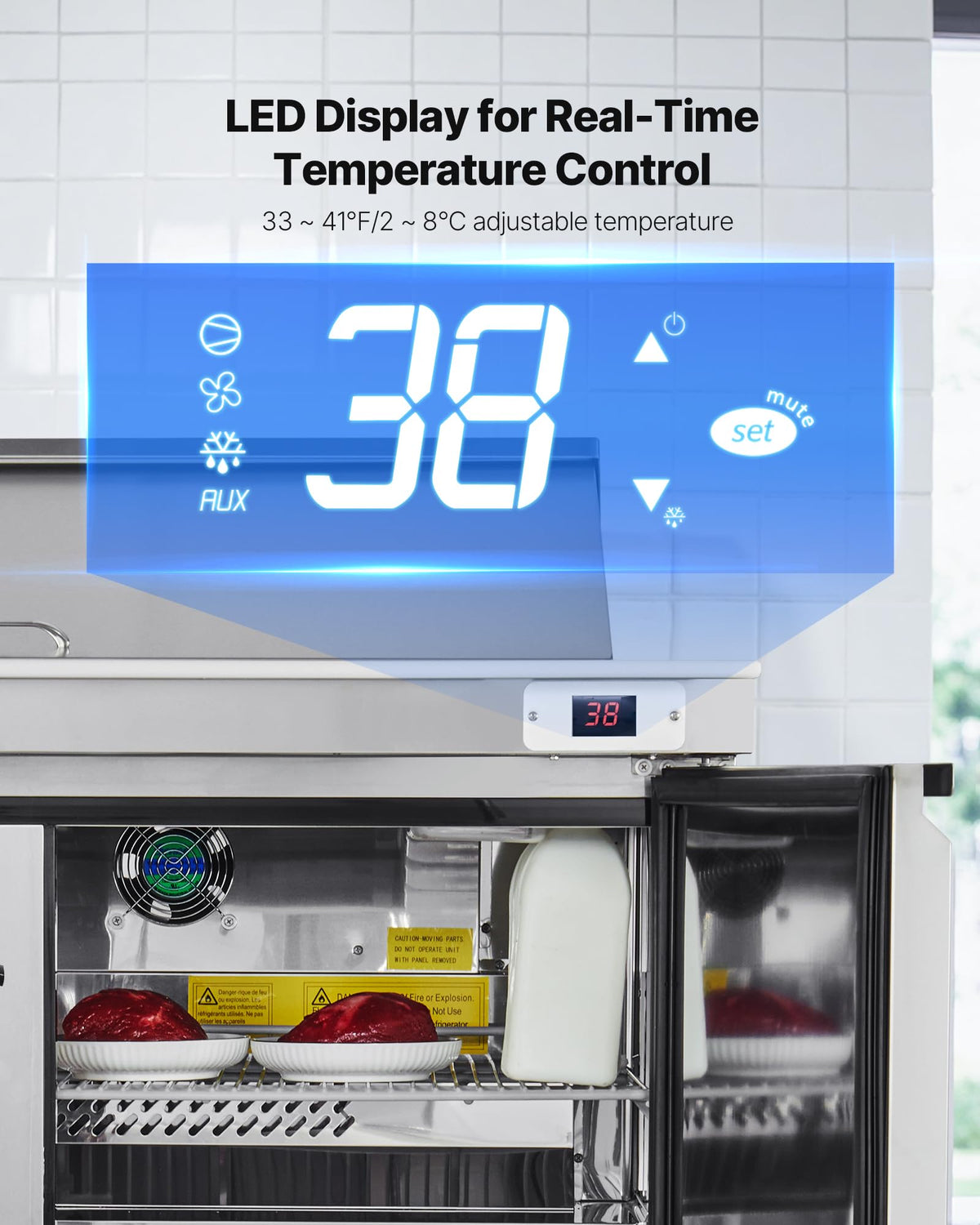 12.5 Cu.Ft. Capacity: Skilled In Cold Storage And Freshness, This Refrigerated Prep Table Includes A 48.4 X 9.5 Inch Cutting Board For Sandwich-Making. The Perforated Shelf Has 18 Stainless Steel 1/6 Pans That Are Heavy-Metal Free And Easy To Clean | Quick & Efficient Cooling: Featuring A Cubigle Compressor And Finned Copper Tubing, This Sandwich Prep Table Ensures Reliable Cooling And Meets Ul, Csa Tested Standards For Tested Performance | Premium Material: Food-Grade Pc Pans Meet Ansi Tested Standards, Providing Peace Of Mind For Food Storage. The Sandwich Fridge With Stainless Steel Build Is Durable And Easy To Clean, With Brake Casters For Smooth Mobility | Electronic Temperature Control: With A Digital Control Screen, This Sandwich Table Maintains Temperatures At 33~41?, So Vegetables, Sauces, Fruits, And Meats Stay Fresh | Auto-Closing Door: When The Door Opens Within 90