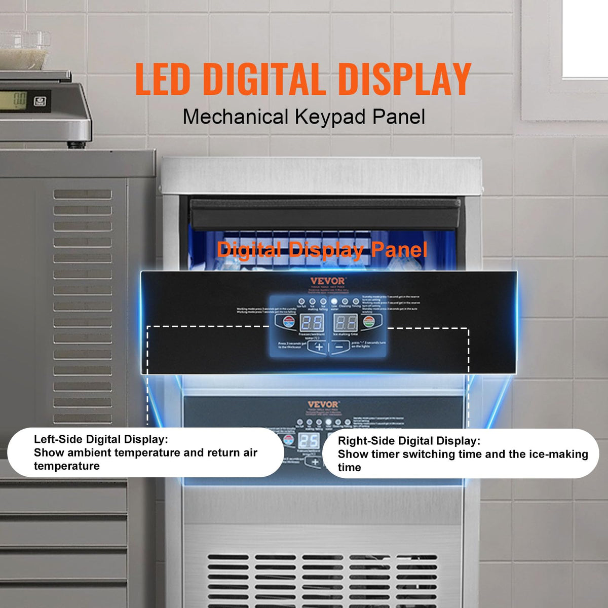 80-90Lbs/24H Commercial Ice Maker With 2 Ice Scoopsthis Commercial Ice Maker Of Food Grade Material Is Perfect For Coffee Shop, Restaurant, Bar, Pub, Desert Shop, Etc. To Make Ice Easily And Efficiently. Adopting High Efficient Compressor, Rapid Cooling, And Fully Automatic Operation, It Can Produce 80-90 Lbs Of Ice During 24 Hours, Which Can Mostly Meet Your One Day S Needs. Ice Storage Of 33 Lb (16.5 Kg). And You Can Increase Or Reduce The Ice Thickness Through Clicking The Button On The Control Panel To Meet Various Needs Of Different Ice-Made Food, Such As Keeping Food Fresh, Making Ice-Cold Drink, Milk Shake, Fruit Ice Shake, Etc. Rapid And Efficient Ice Makingsafe And Healthymicrocomputer Automatic Controlcompletely Equipped With Top Qualityice Thickness Can Be Adjusted To Your Need.Thin: 5-8 Minutes.Middle: 8-11 Minutes.Thick: 11-15 Minutesspecificationspower: 110V, 60 Hz, 230W24H Production: About 80-90 Lbs/24H (40 Kg) Ice Storage: About 33Lbs(16.5Kg)Reservation Function: 5-7 Hoursmaterial: Stainless Steel+Absice Tray: (4*8) 32 Ice Cubes Ice Cube Size: 0.9'' X 0.9'' X 0.9'' (22 X 22 X 22 Mm)Gross Weight: 59Lbs (27.2 Kg)Product Dimension (L X W X H): 19.68X14.7X32.75 Inchpackage Content1 X Commercial Ice Maker 80-90 Lbs/24H 2 X Ice Scoops1 X Drain Pump1 X Water Filter1 X Water Inlet1 X Water Outlet1 X Instruction Manual