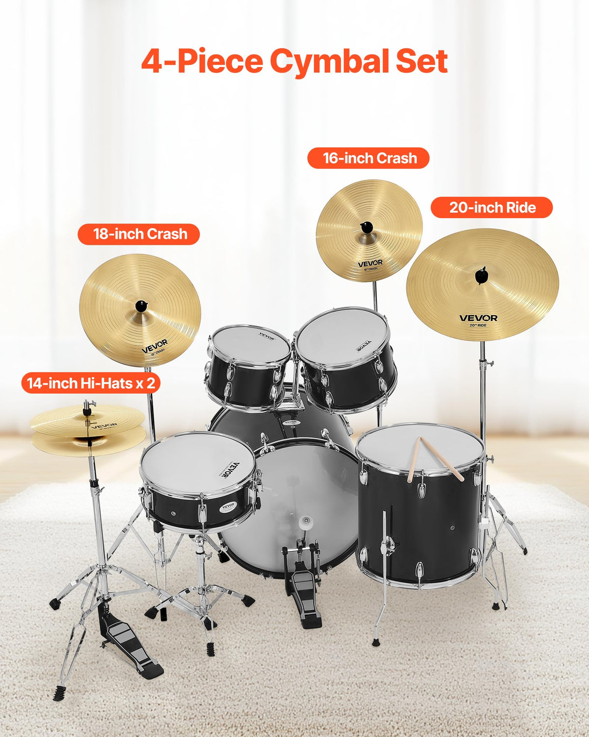 Vevor Cymbal Pack, 5 Pieces Cymbals For Drum Set, Alloy Cymbals Drum Set Includes 14-Inch Hi-Hats, 16-Inch Crash, 18-Inch Crash,