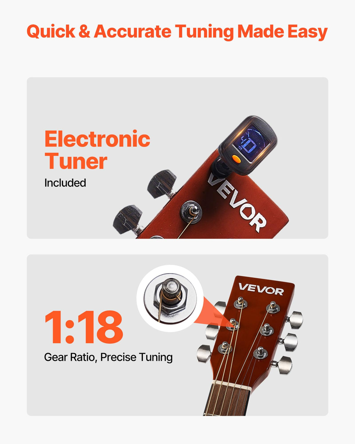 Vevor Dreadnought Acoustic Guitar, 40 In, 6-String Sunburst Solid Top Guitar, Beginner Bundle With Gig Bag, Tuner, Strap, Steel