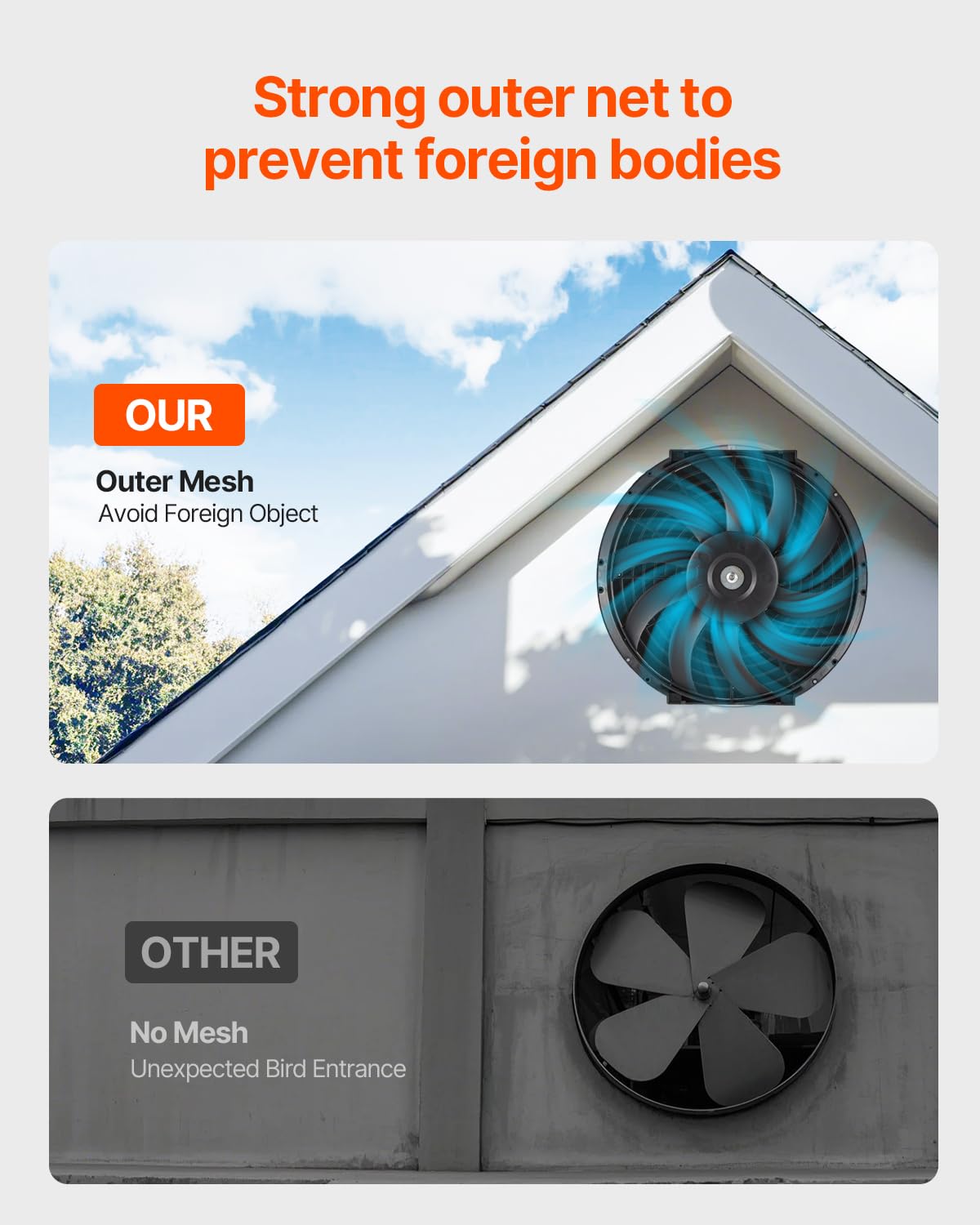 Efficient Ventilation: Our Gable Mount Fan Delivers An Impressive 1300 Cfm Airflow, Covering Areas Up To 1850 Sq. Ft.. It'S The Ideal Choice For Attics, Workshops, And Other Spaces, Effectively Reducing Temperatures And Enhancing Air Quality With Ease. | Energy-Saving Design: Equipped With An Adjustable Thermostat, This Gable Attic Fan Automatically Turns On And Off Based On Ambient Temperature, Minimizing Energy Waste While Promoting A Green Lifestyle. | Durable & Long-Lasting: Built To Endure, Our Gable Vent Fan Features A High-Strength Steel Housing That'S Proof To Corrosion And Aging. The Aluminum Alloy Fan Blades Remain Sturdy And Unbent For Long-Term Use. | Enhanced Security Features: Designed With A Robust Protective Mesh, This Attic Vent Fan Keeps Out Birds, Leaves, And Debris, Ensuring Secure Operation And Prolonging The Lifespan Of Your Ventilation System. Stay Out Of Worry With Our Reliable Security Features! | Installation Made Easy: This Gable Mount Attic Fan Includes A 12-Inch Mounting Bracket For Easy Setup. No Professional Tools Are Required-Simply Mount It To Your Wall And Enjoy Fresh, Clean Air Effortlessly!