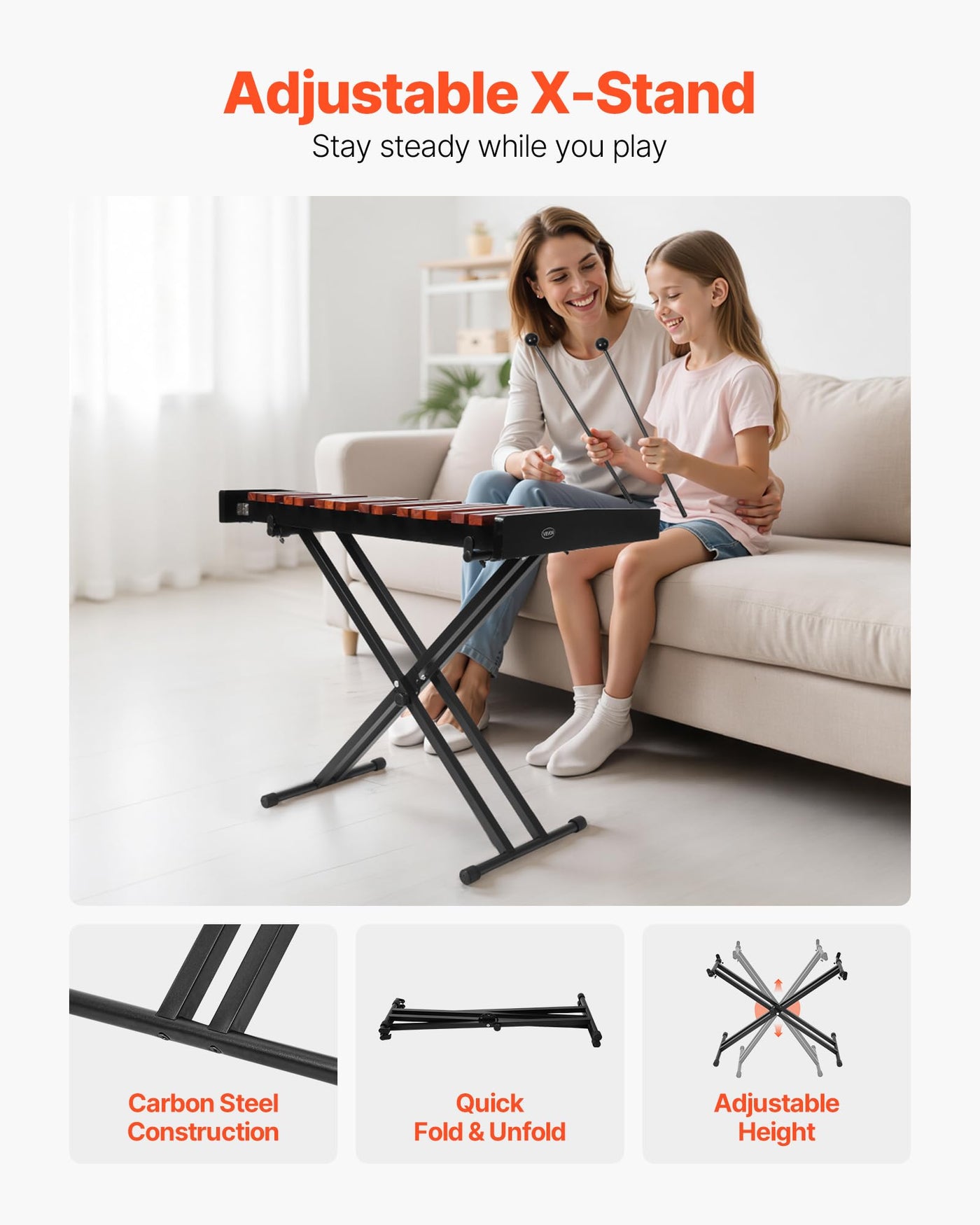37 Notes, Wide Range: Explore A Wide Melodic Range With 37 Notes-Our Glockenspiel Xylophone Is Ideal For Childrens Music Enlightenment Or Playing Popular Tunes. Great For Music Learning, Practice, And Performing Pop Tunes | Soft & Layered Tones: With Wooden Keys, Our Professional Xylophone Instrument Delivers Soft, Resonant Tones Suitable For Home Practice, Music Education, And Stage Use. Professionally Tuned At The Factory For Pitch Precision And Minimal Deviation | Exquisite Workmanship: The Wooden Glockenspiel Xylophone Frame Is Polished Through Multiple Sanding Stages, Then Finished With A Clear Lacquer For A Smooth, Burr-Free Touch. Not Just Secure To Use-Its Also Visually Appealing With Quality You Can See | Foldable X-Stand: This Wooden Xylophone Comes With A Foldable X-Stand That Made Of Carbon Steel, Staying Rock-Solid While You Play. The 12.6-37.4 In Adjustable Height Suits All Ages, And The Foldable Design Makes Storage And Transport Effortless | Portable Carrying Bag: Includes A Durable 1200D Oxford Carrying Bag And Shoulder Strap, You Can Carry This Glockenspiel Instrument By Hand Or Sling It Over Your Shoulder. Waterproof And Scratch-Resistant, The Bag Keeps Your Instrument Secure