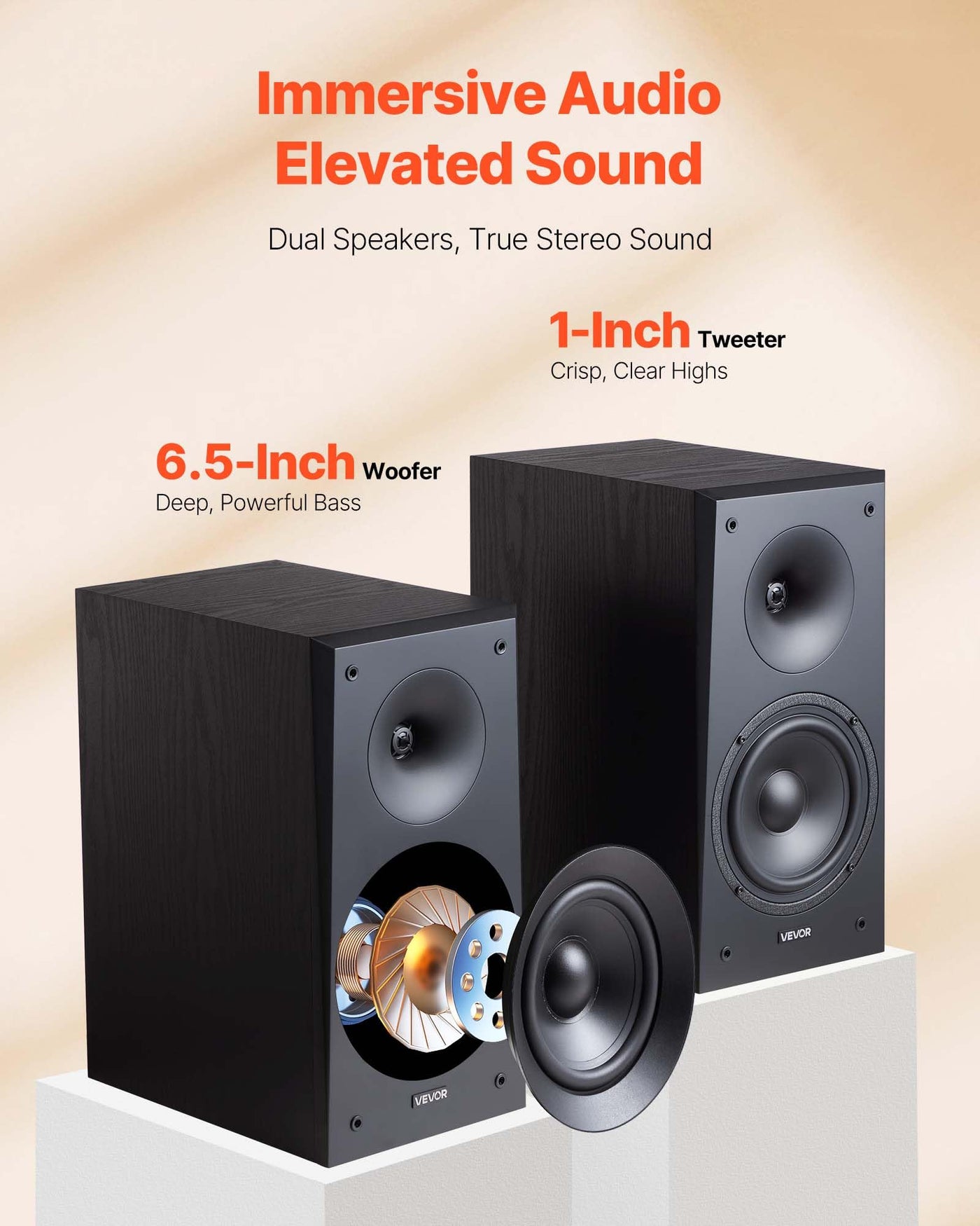 Vevor Passive Bookshelf Speaker, 100W, Book Shelf Stereo Speakers With 6.5-Inch Woofer And 1-Inch Tweeter, Detachable Grille, 55