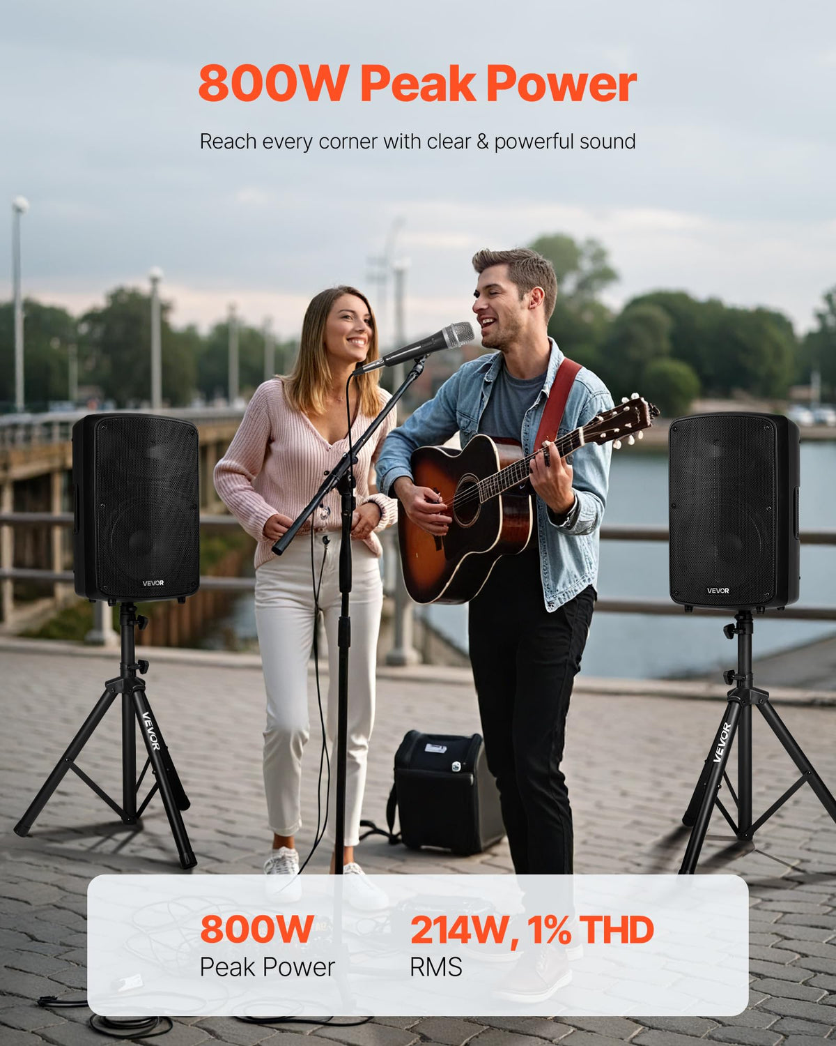 Vevor Portable Pa System With Wireless Microphone & Speakers, 800W Bluetooth Pa System, 6-Channel Mixer, Dual 10 Speakers, Usb/S