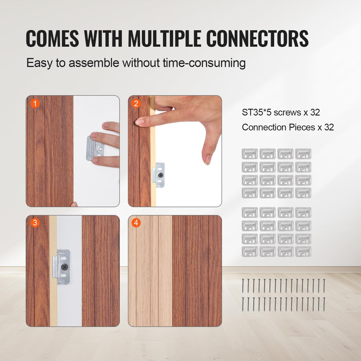 Wpc Acoustic Panel Walls: The Acoustic Panel Walls Made From Wpc Material Combine Modern Slat Patterns With A Wood Finish, Beautifully Decorating Your Room While Providing Peace Of Mind With Sgs Fire Resistance. | Recyclable Material: These Slat Panels Are Fire-Resistant, Formaldehyde-Free, And Waterproof, Offering Exceptional Durability And Saving You The Hassle Of Frequent Replacements. | Say Goodbye To Noise: Experience Reliable Sound Absorption For A Quiet And Comfortable Environment. Enjoy Conversations And Relaxation Without The Interference Of Unwanted Sound, Creating A Harmonious Atmosphere For You And Your Family. | Easy Installation: With A Comprehensive Set Of 32 Screws And 32 Connectors, The Assembly Process Is Designed To Be Straightforward, Allowing You To Set Up Quickly And Efficiently Without The Need For Specialized Tools. | Convenient Coverage: Each Sized Pieces Measuring 96.5
