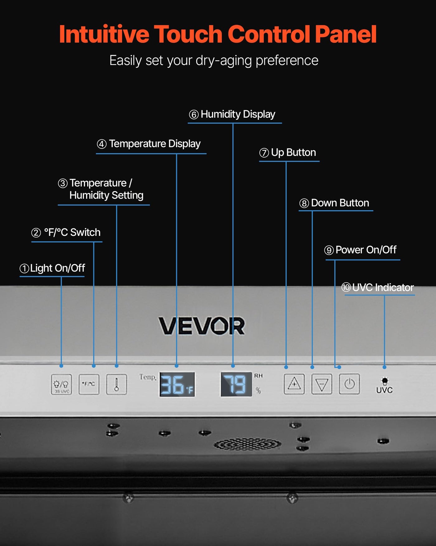 Vevor Zs-A450N Fridge For Steaks Dry Ager Refrigerator For Meat With Precise Temperature & Humidity Control, Freestanding & Buil