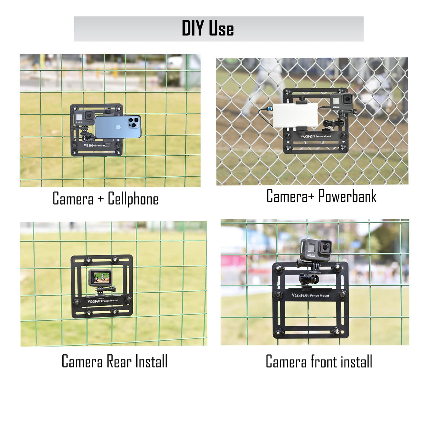 Description: The Fence Mount Is Patented And Designed By Vgsion. Our Design Concept Is To Make The Camera Fence Mount To Be Flexible, Stable, And Convenient. The Fence Mount Is For Chain Link Fences. Fence Mount Details: Material: Aluminum Alloy And Stainless Steel Installation Method: Attach The Fence Mount To The Chain-Fence With 4 Screws. The Screws Position Can Be Moved To A Suitable Position Based On The Fence. Various Installation Methods 1. Camera+Fence Mount, 2. Camera +Cellphone+ Phone Clip 3. Camera +Phone Clip+ Power Bank; 4. Cellphone +Fence Mount+ Phone Clip Camera Holder Details 1. The Camera Holder Is With Universal Arm. This Arm Supports Manual Adjustment Of 360 Degrees Horizontally And 180 Degrees Vertically. In This Case, The Camera Can Be Installed On The Fence From Inside And Outside The Baseball Field. 2. The Camera Holder On The Fence Mount Is Movable. You Can Adjust The Camera Position By Loosening The Bottom Screw. 2. The Holder Is Compatible With Gopro Hero 10, Hero 9, Hero 8, Hero 7, Hero 6, Hero 5 Session, Insta360 One Rs, Insta360 One R, Dji Action 2, And Other Similar Cameras. Phone Bracket Details The Phone Holder Is Adjustable By Screw, Fitting Mobile Phones With A Width From 55 Mm To 105Mm. The Clip Fits Iphone 11, Iphone Xr, Iphone 7, Iphone X, Iphone 8, Moto G Power, Motorola One 5 G, Blackberry, Samsung Galaxy S10 / A12, Nokia 225 And Other Cellphones Packing List: Fence Mount With Camera Holder, Thumb Screw, Cellphone Clip