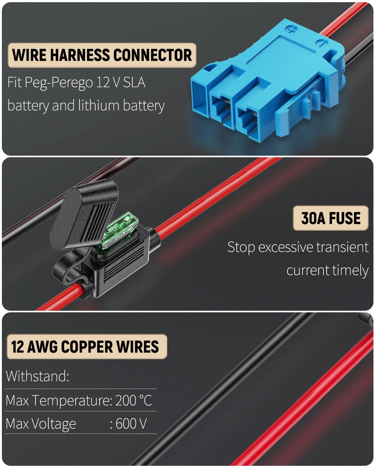 Q: Can I use this adapter for Peg-Perego riding toys with 12V batteries?A: Absolutely! The adapter is designed to work seamlessly with Peg-Perego 12V riding toys, making it an excellent choice for those looking to upgrade their battery performance.