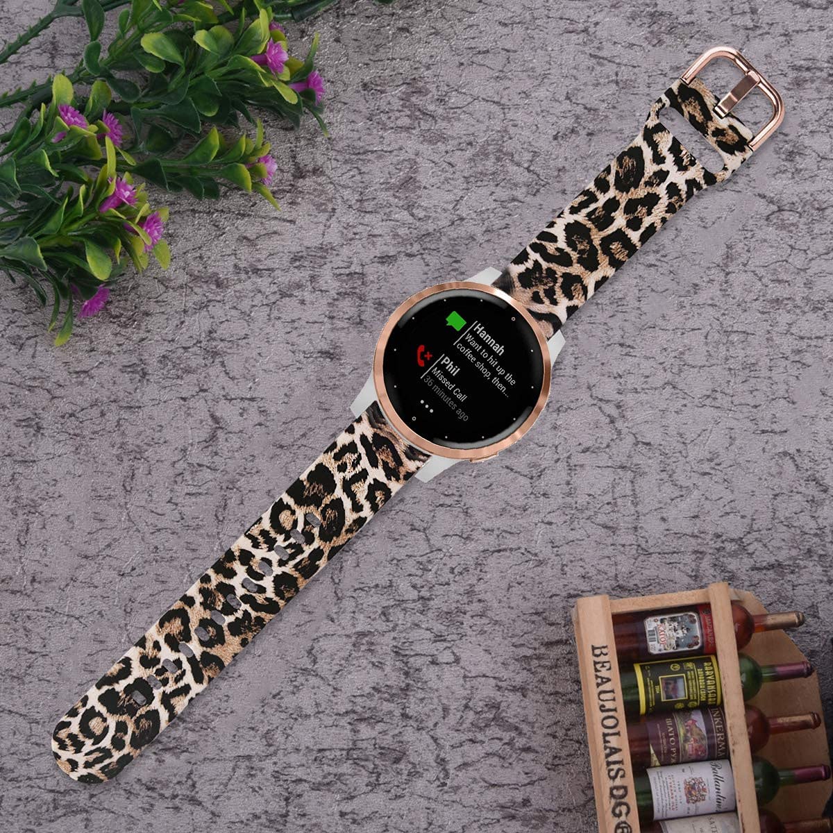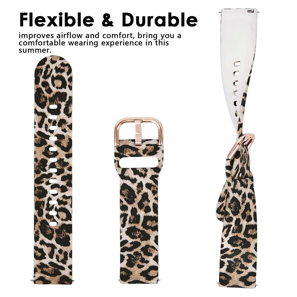 Vicrior Bands Compatible With Garmin Vivoactive 4S 40Mm / Venu 2S Smart Watch, Quick Release Soft Silicone Fadeless Pattern Printed Floral Replacement Band For Garmin Vivomove 3S, Leopard