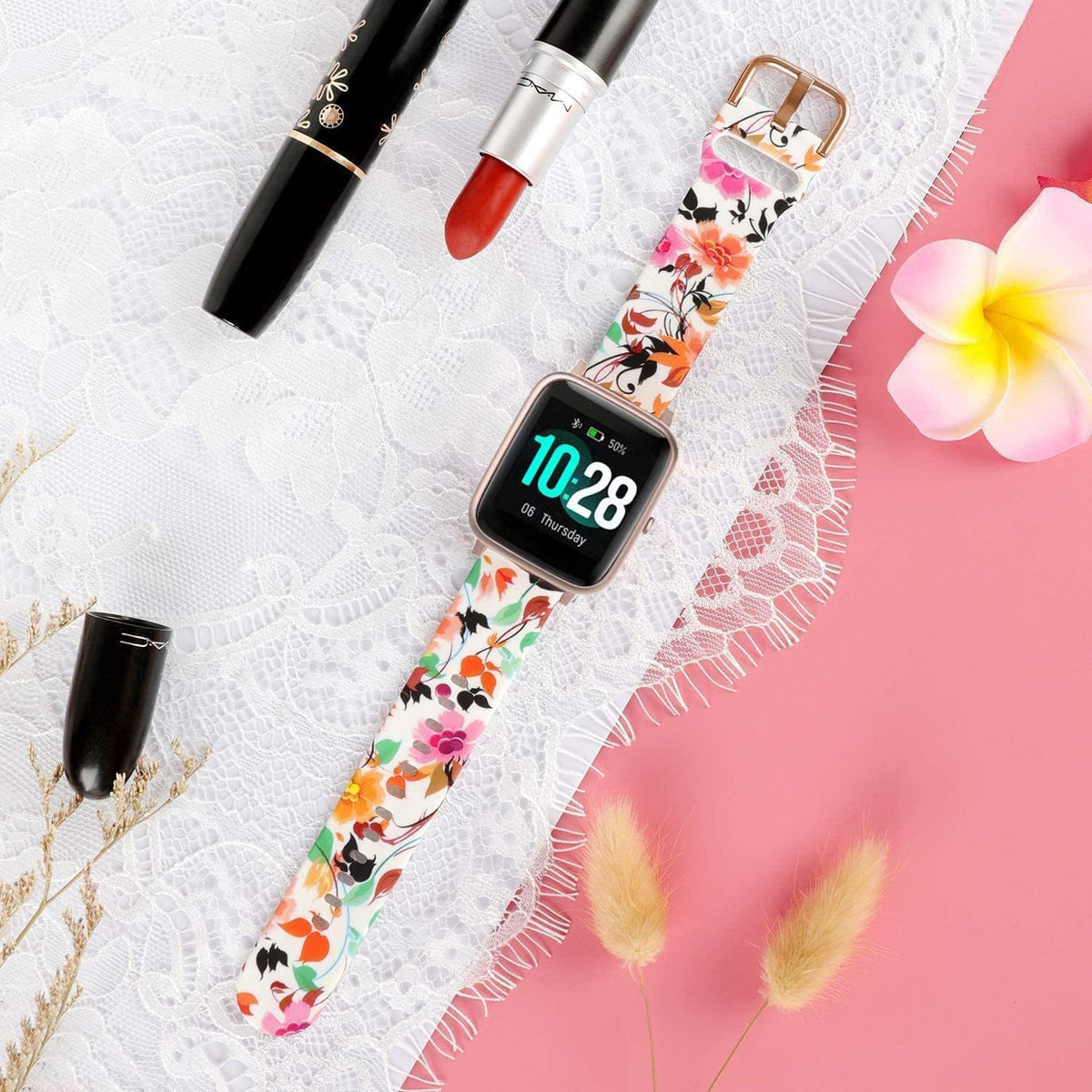 Vicrior Bands Compatible With 19Mm Id205L Veryfitpro Smart Watch, Soft Silicone Fadeless Pattern Printed Floral Replacement Band For Id205L Id205G Id205 Id205U Id205S, Sw020 Sw021 Sw023